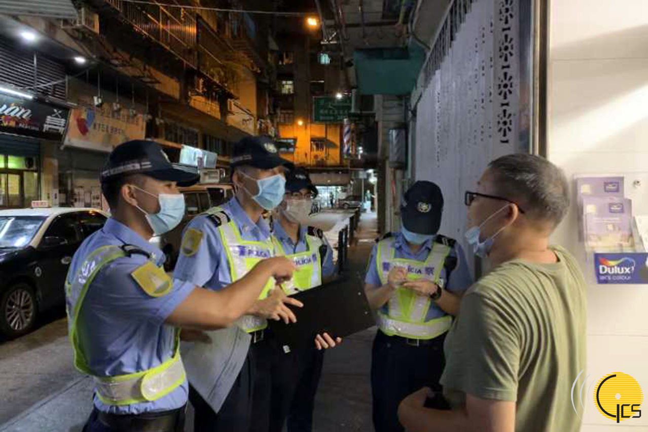 治安警張貼撤離標示以進行排查