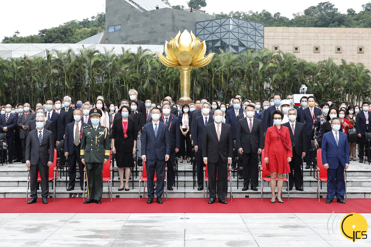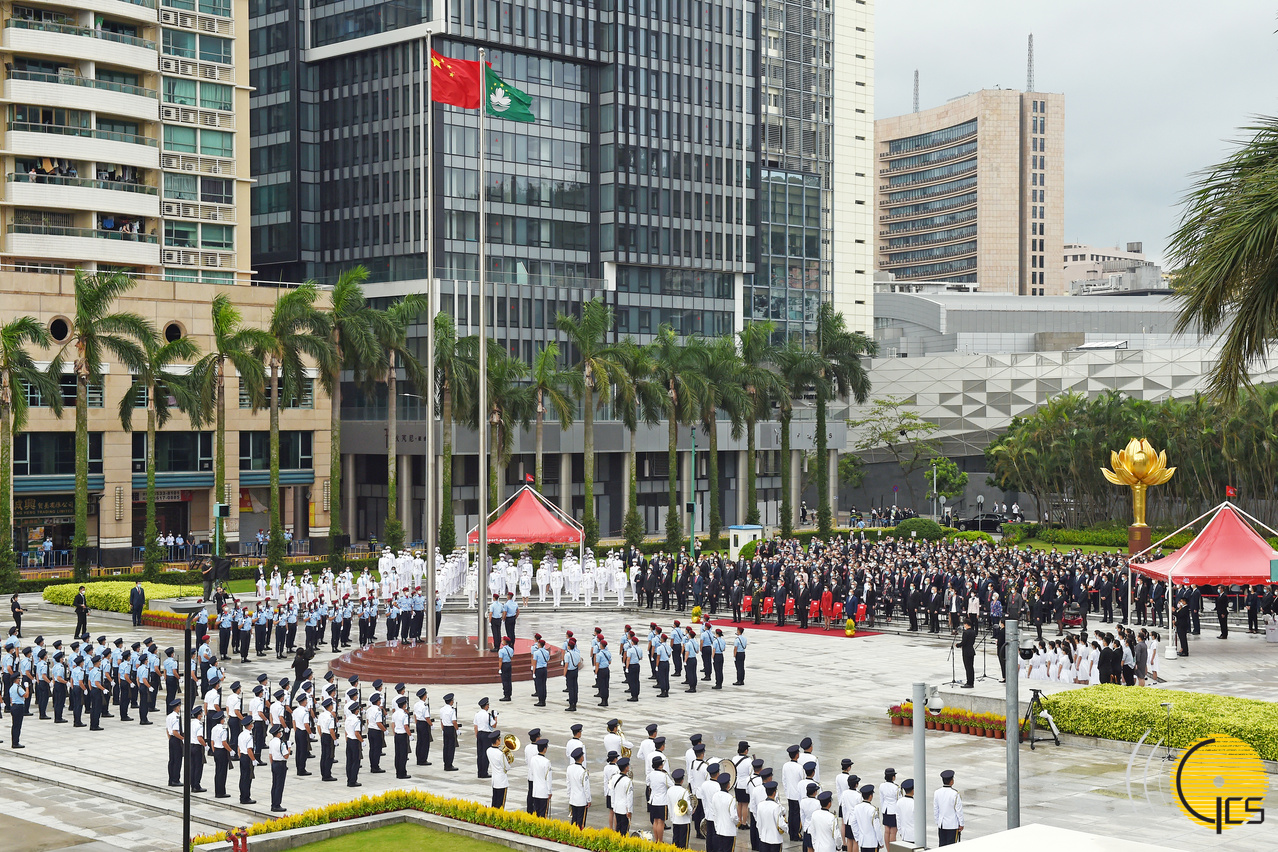 行政長官賀一誠、中央駐澳官員、解放軍駐澳部隊軍官、特區立法和司法機關負責人、政府主要官員及各界人士出席慶祝中華人民共和國成立71周年升旗儀式。