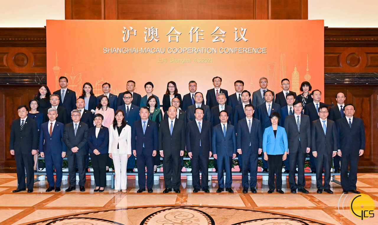 “滬澳合作會議第一次會議”在上海舉行,雙方代表團成員在會議後合影。