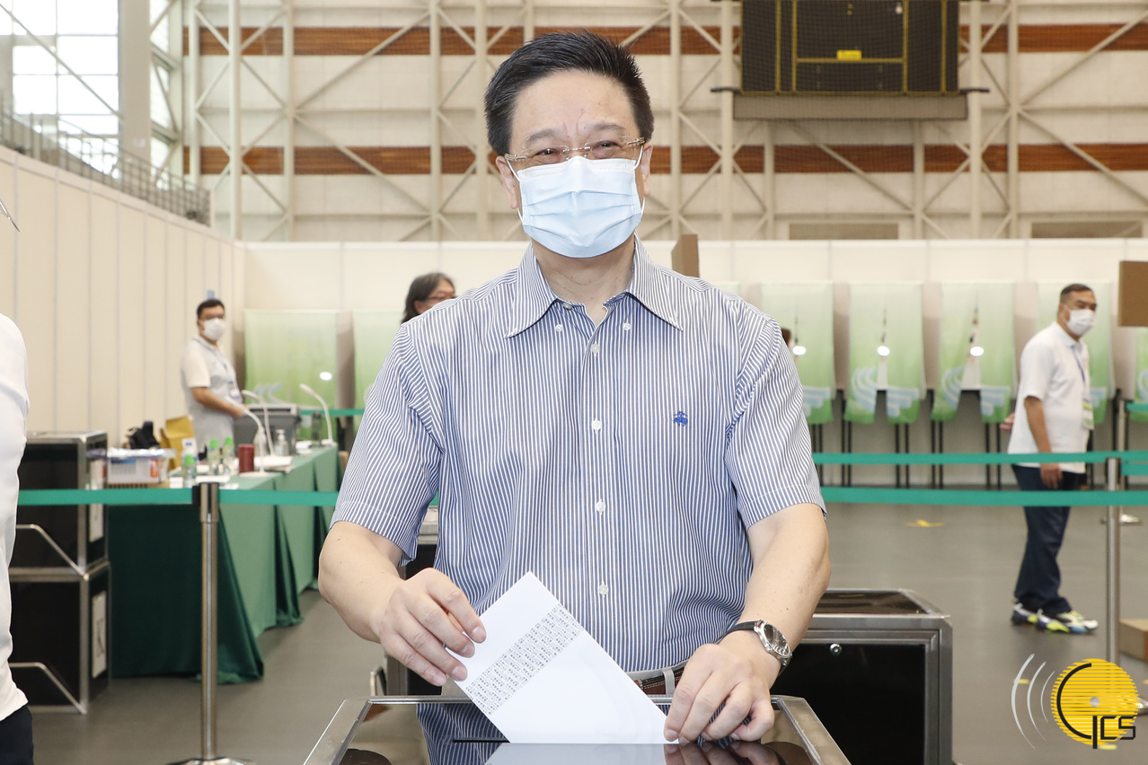 2021立法會選舉:選民在保持適當社交距離下輪候投票。