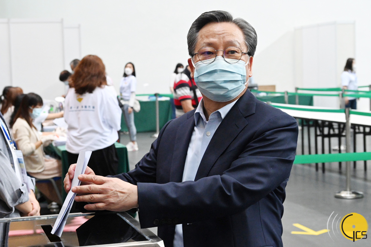2021立法會選舉:在投票站開放前,立法會選舉管理委員會到投票地點外視察。