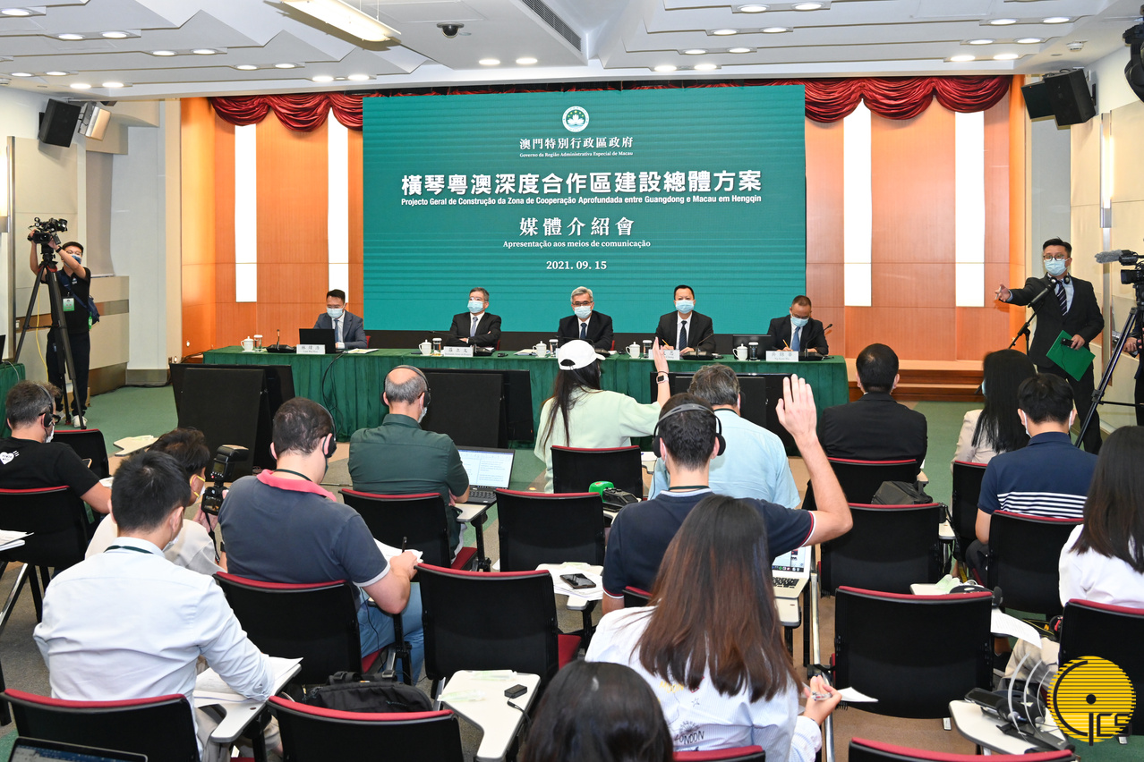 保安司司長黃少澤與運輸工務司司長羅立文出席《橫琴粵澳深度合作區建設總體方案》 第三場媒體講解會,解說方案的重點政策。