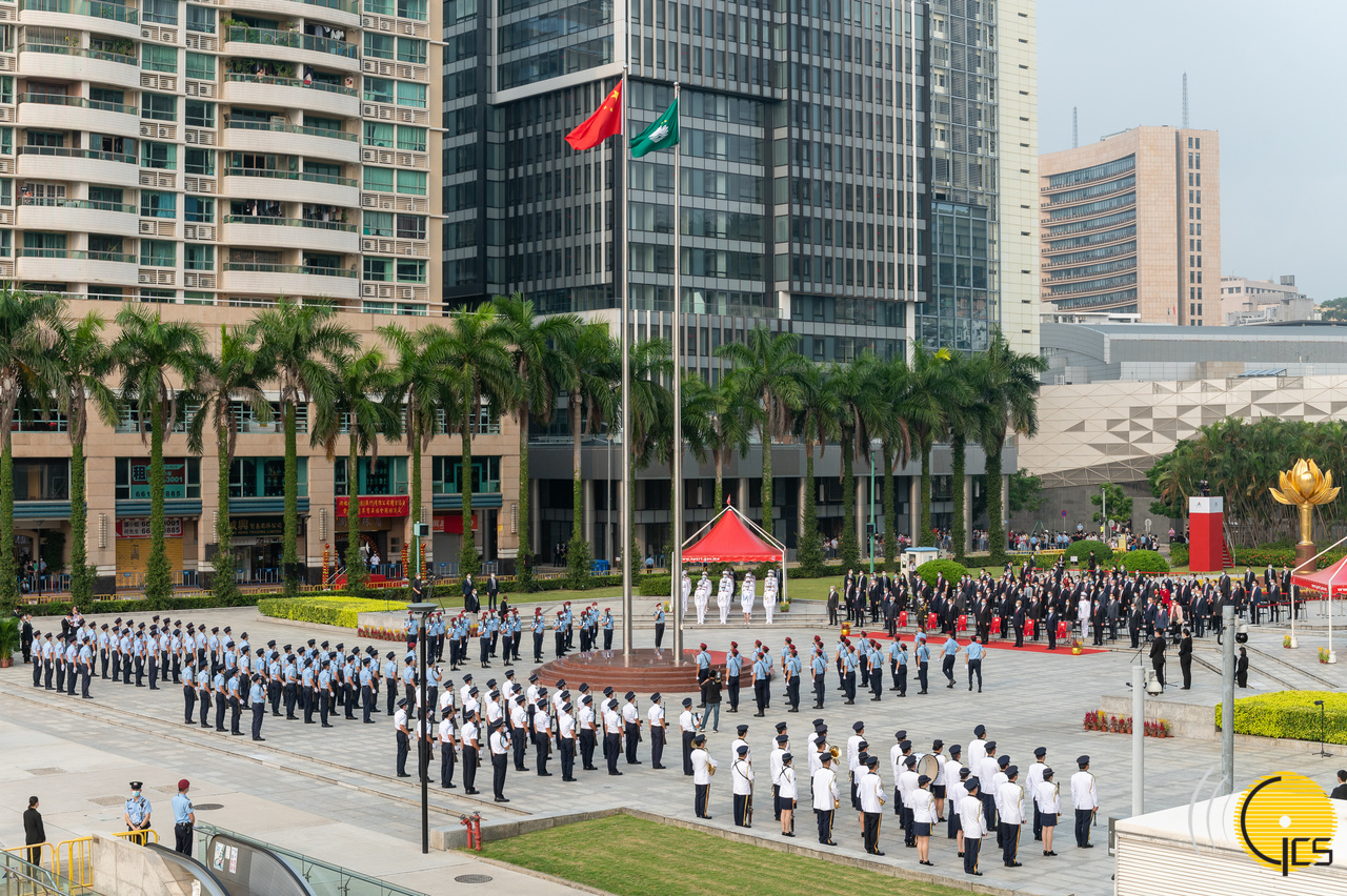 行政長官賀一誠、中央駐澳官員、解放軍駐澳部隊軍官、特區立法和司法機關負責人、政府主要官員及各界人士出席慶祝中華人民共和國成立72周年升旗儀式。