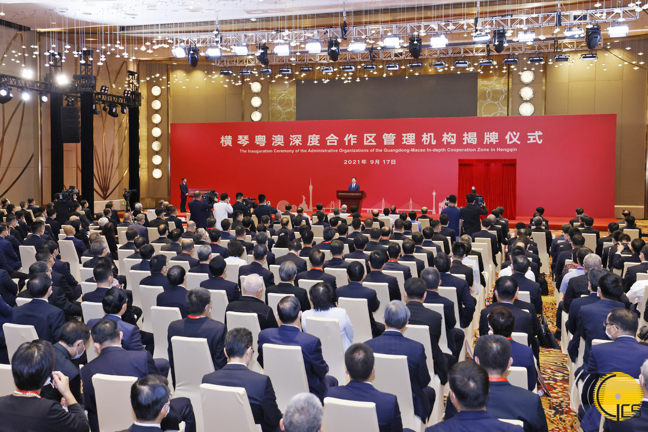 中央政治局常委、國務院副總理韓正及廣東省委書記李希為橫琴粵澳深度合作區管理機構揭牌。全國政協副主席何厚鏵,國務院港澳辦主任夏寶龍,澳門特區行政長官賀一誠,廣東省委副書記、省長馬興瑞在台上見證。