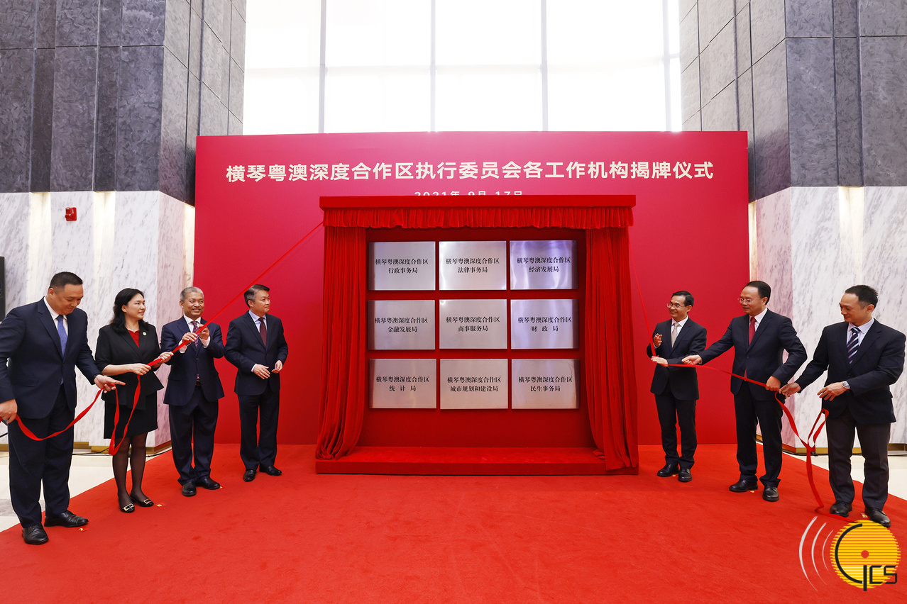 經濟財政司司長、橫琴深合區執委會主任李偉農率領各副主任為橫琴粵澳深度合作區執行委員會轄下9個工作機構揭牌。