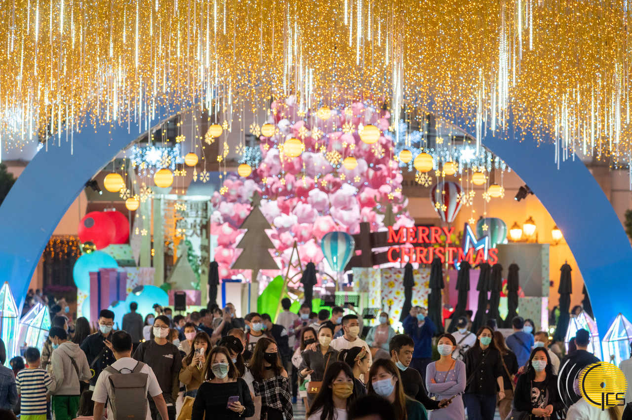 白色雪人與繽紛聖誕鹿、禮盒、寶石等裝點噴水池一帶,讓居民和旅客提前感受聖誕節溫馨歡樂。