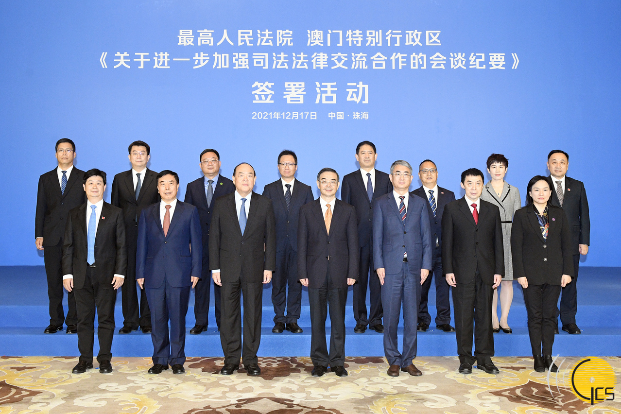 澳門特別行政區行政長官賀一誠、中華人民共和國最高人民法院院長周強共同見證最高人民法院與澳門特別行政區《關於進一步加強司法法律交流合作的會談紀要》簽署活動。