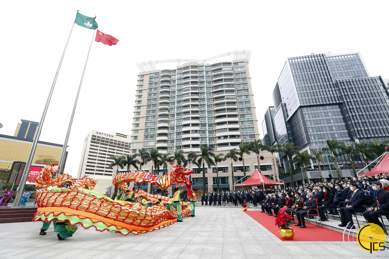 行政長官賀一誠、中央駐澳官員、解放軍駐澳部隊軍官、特區立法和司法機關負責人、政府主要官員及各界人士出席慶祝澳門特別行政區成立22周年升旗儀式