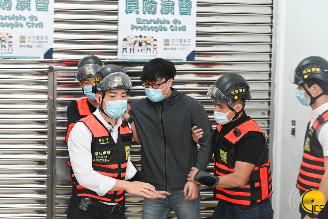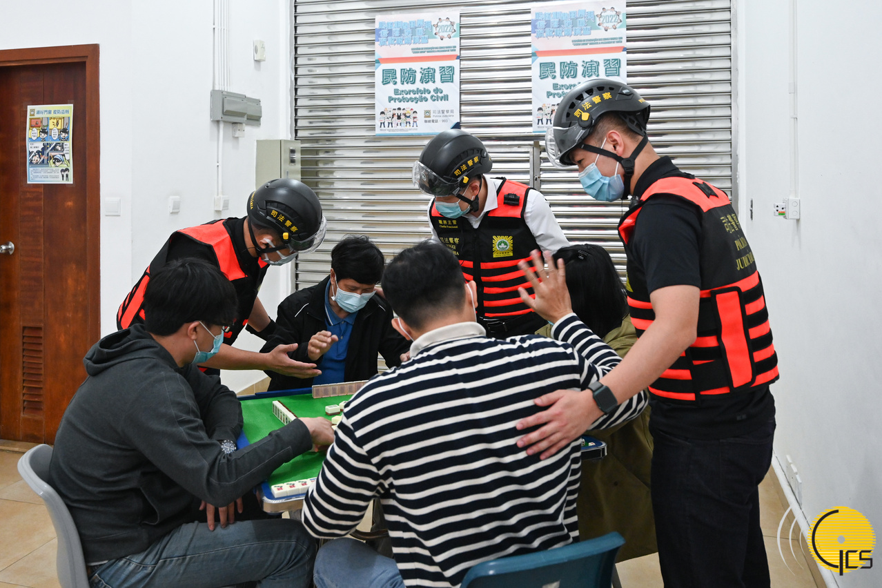 “水晶魚2022”颱風演習-司法警察局人員與拒絕撤離的居民展開談判,勸喻其撤離。