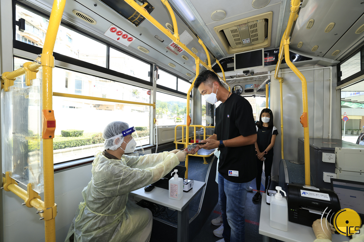 為便利市民採樣,減少跨區流動,特區政府於本次全民核酸檢測增設流動核酸採樣車,流動核酸採樣車首次投入使用。