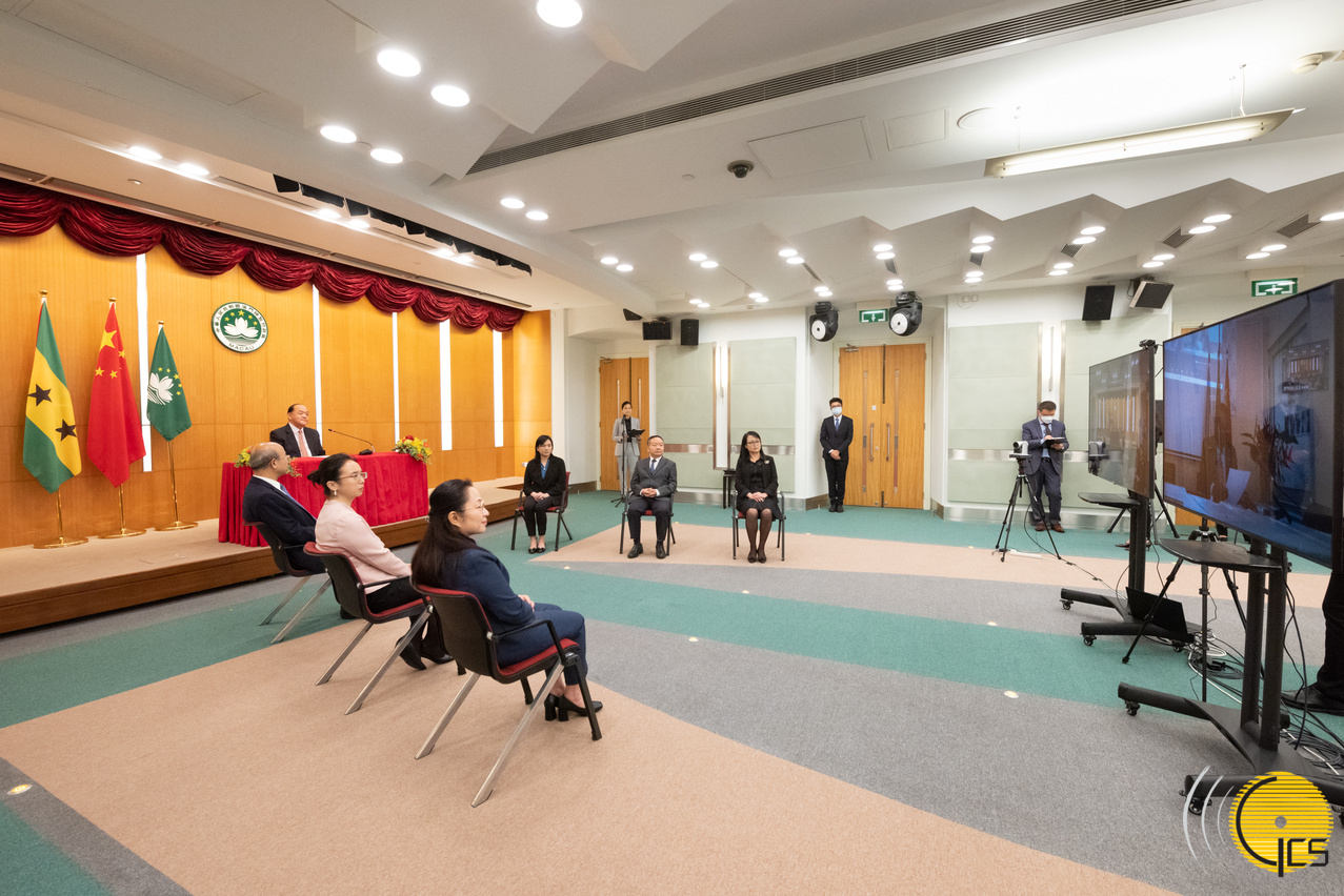 行政長官賀一誠在《中華人民共和國澳門特別行政區與聖多美和普林西比民主共和國阿瓜格蘭德大區締結友好城市關係諒解備忘錄》視頻簽署儀式上致辭