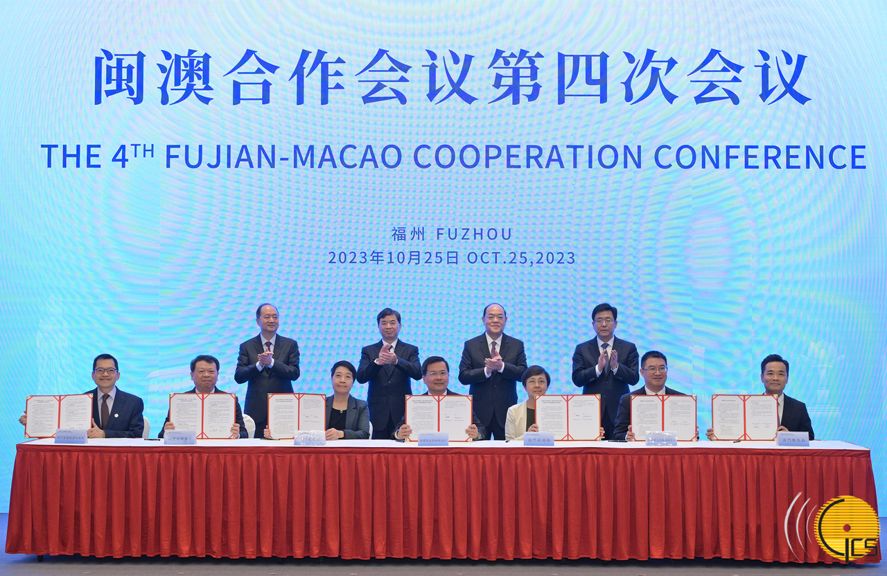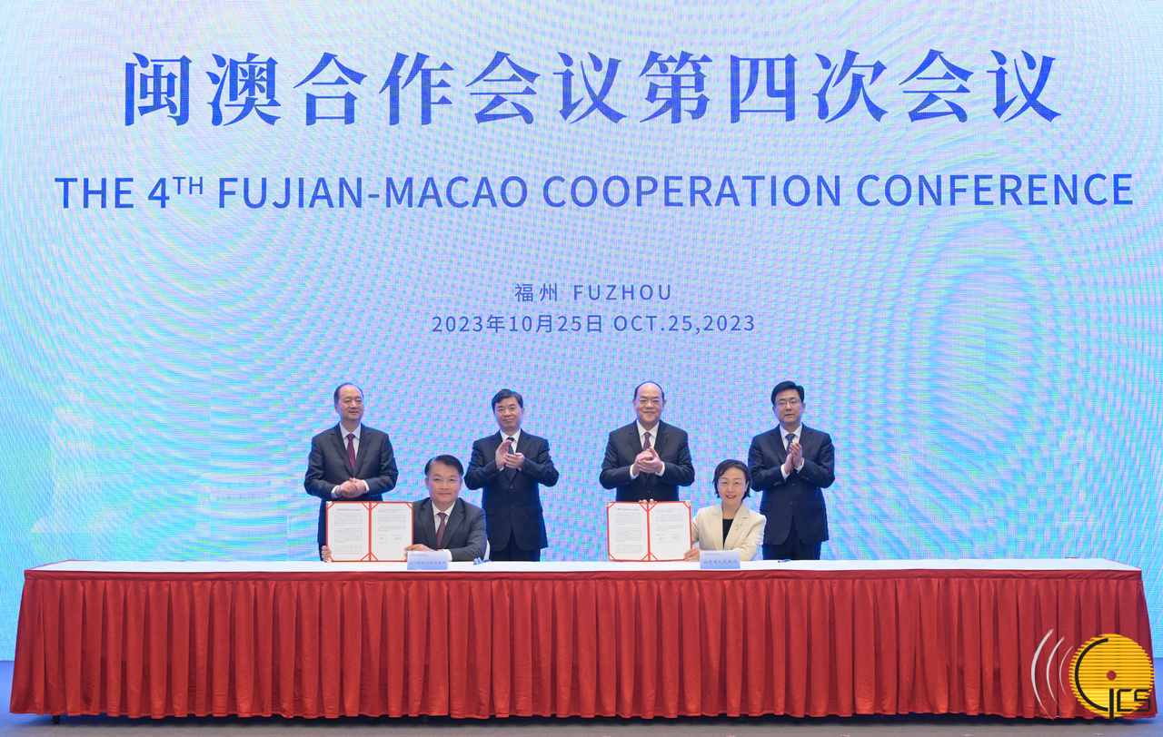 行政長官賀一誠、福建省委書記周祖翼等見證經濟財政司司長李偉農和福建省委常委、常務副省長郭寧寧代表雙方簽署《閩澳合作會議第四次會議合作備忘錄》。