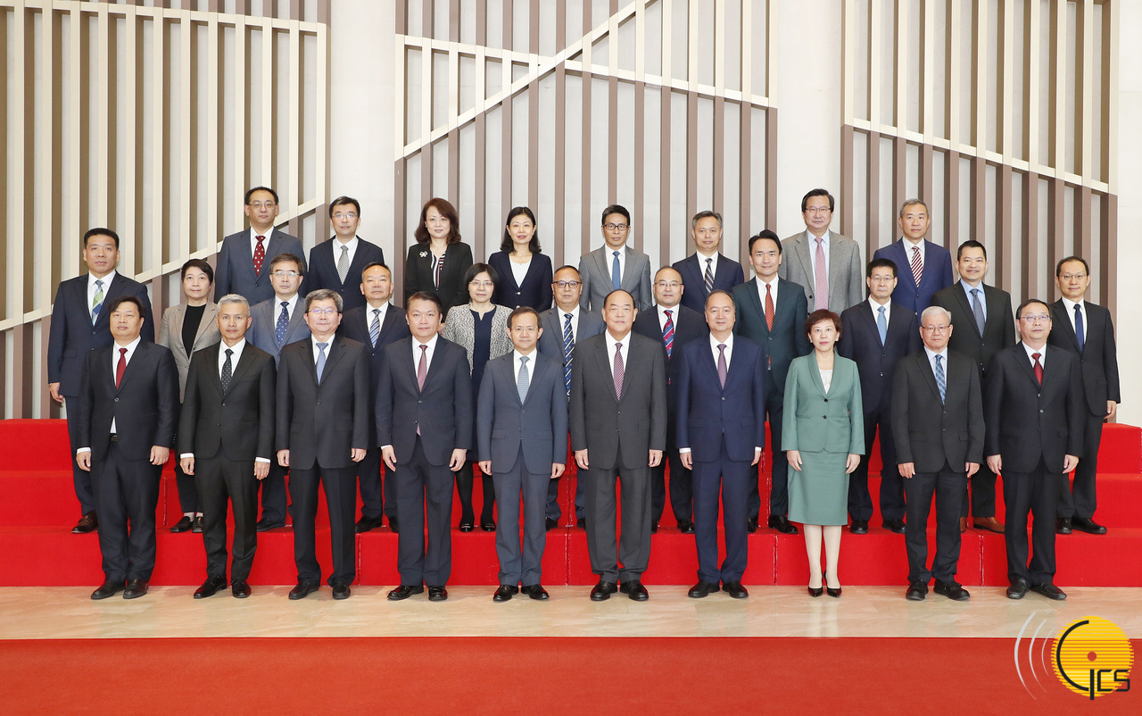 行政長官賀一誠,北京市市長殷勇,國務院港澳事務辦公室副主任、中央駐澳門特區聯絡辦公室主任鄭新聰及京澳兩地政府代表團成員合影。