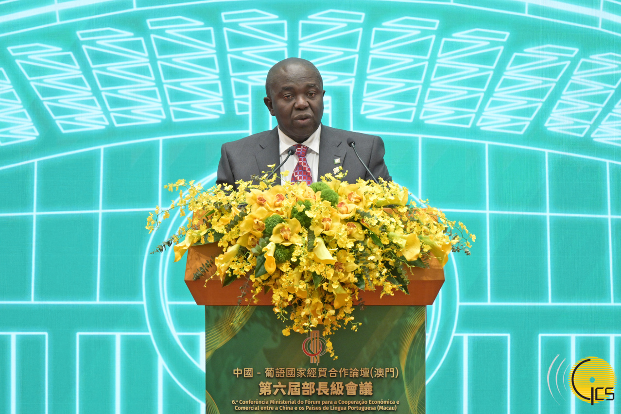 安哥拉工業和貿易部部長魯伊·米根斯在中葡論壇第六屆部長級會議開幕式上致辭。