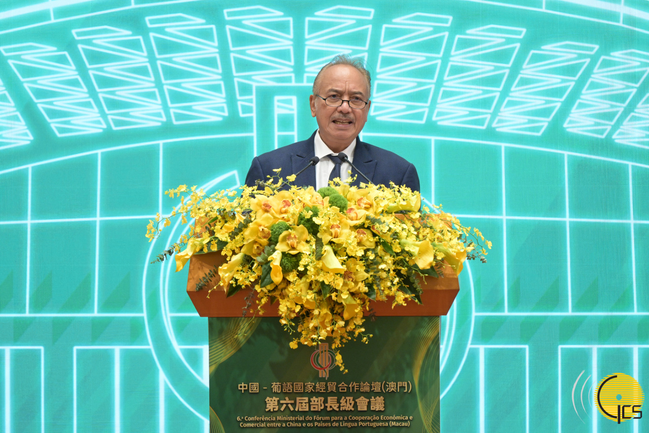 佛得角副總理兼財政、商業發展與數字經濟部部長奧拉沃·科雷亞在中葡論壇第六屆部長級會議開幕式上致辭。