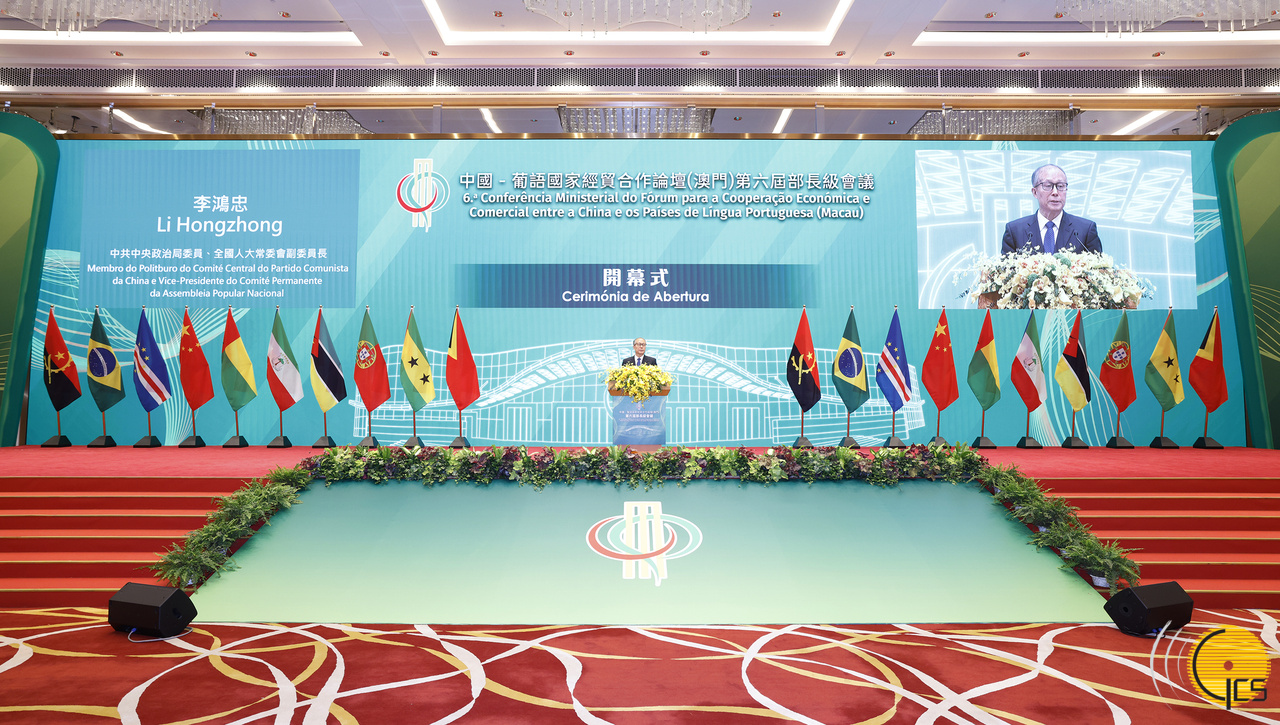 中共中央政治局委員、全國人大常委會副委員長李鴻忠、行政長官賀一誠等一眾嘉賓出席中國—葡語國家經貿合作論壇(澳門)第六屆部長級會議開幕式。