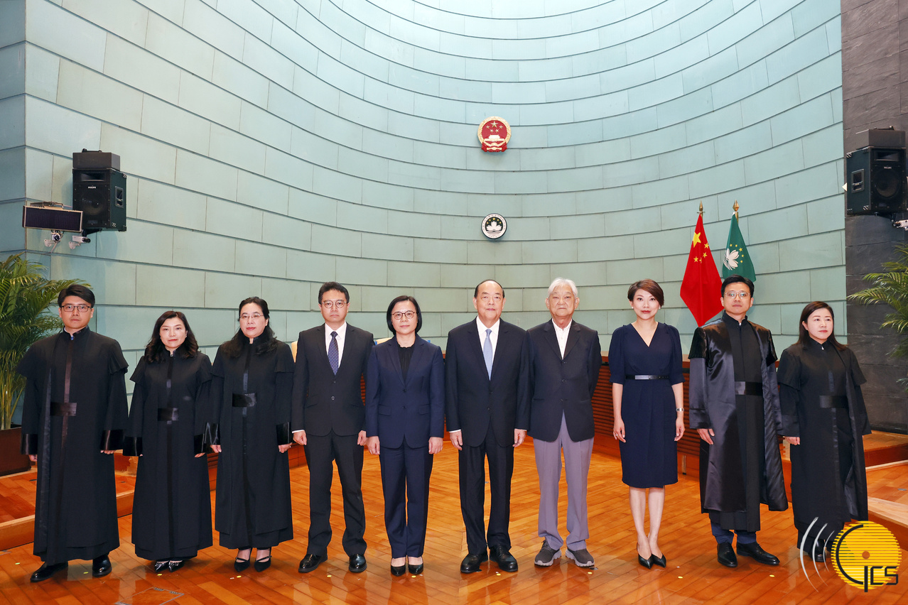 行政長官賀一誠、終審法院代院長宋敏莉及推薦法官的獨立委員會主席劉焯華等,與就職的中級法院法官及第一審法院合議庭主席合影。