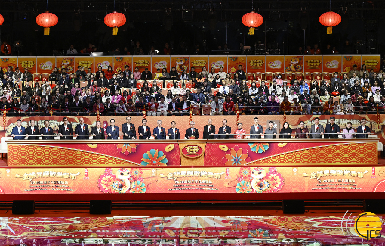 行政長官岑浩輝等一眾主禮嘉賓共同主持"金鱗昇輝歡樂春節2025農曆新年花車匯演"開幕儀式。