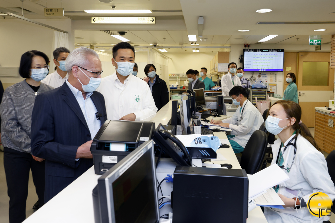 行政長官岑浩輝視察仁伯爵綜合醫院,瞭解新春期間的醫療服務,並為當值的醫護人員打氣。