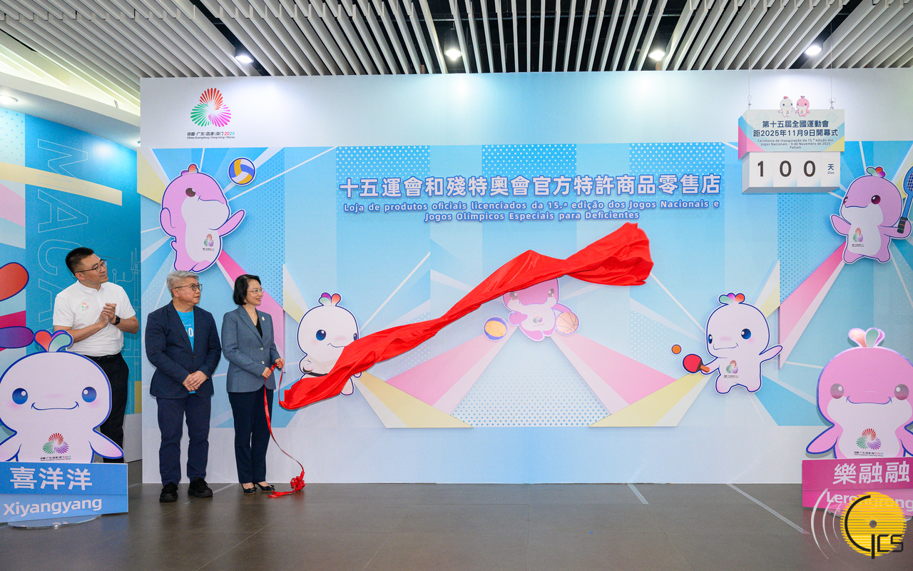 社會文化司司長柯嵐主持十五運會和殘特奧會澳門賽區官方特許商品零售店投運儀式。