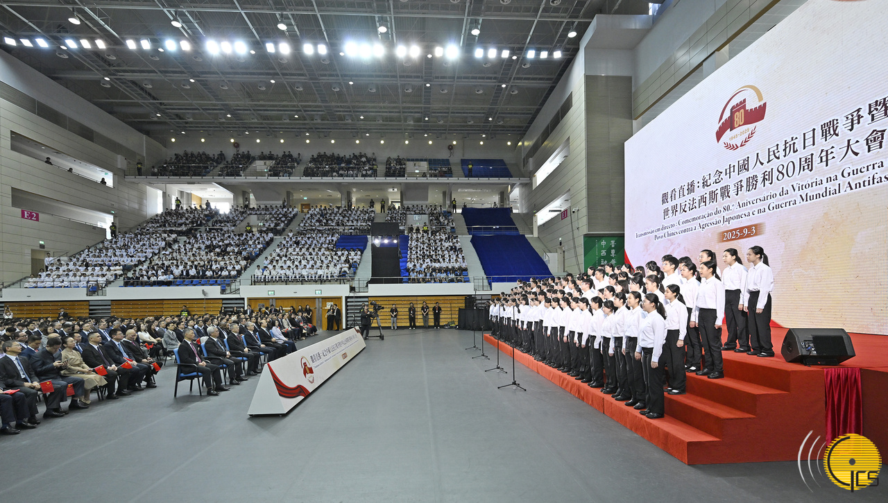 特區政府在澳門理工大學體育館舉辦“觀看直播:紀念中國人民抗日戰爭暨世界反法西斯戰爭勝利80周年大會”活動。