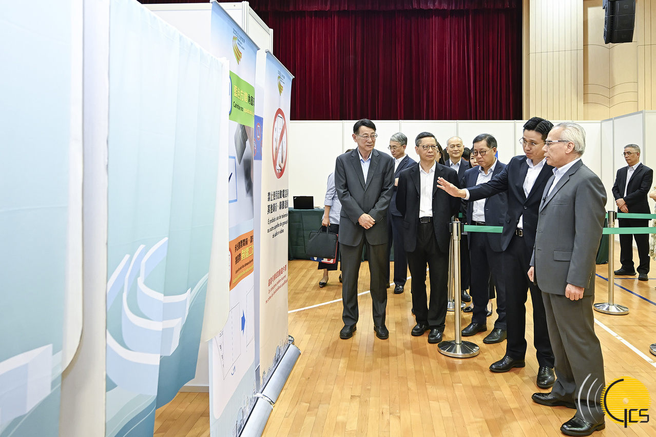 行政長官岑浩輝視察設於塔石體育館主場館的直選投票站,並了解模擬票站的運作情況。