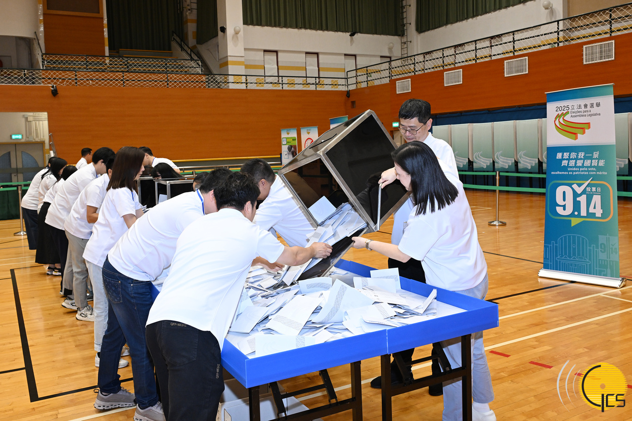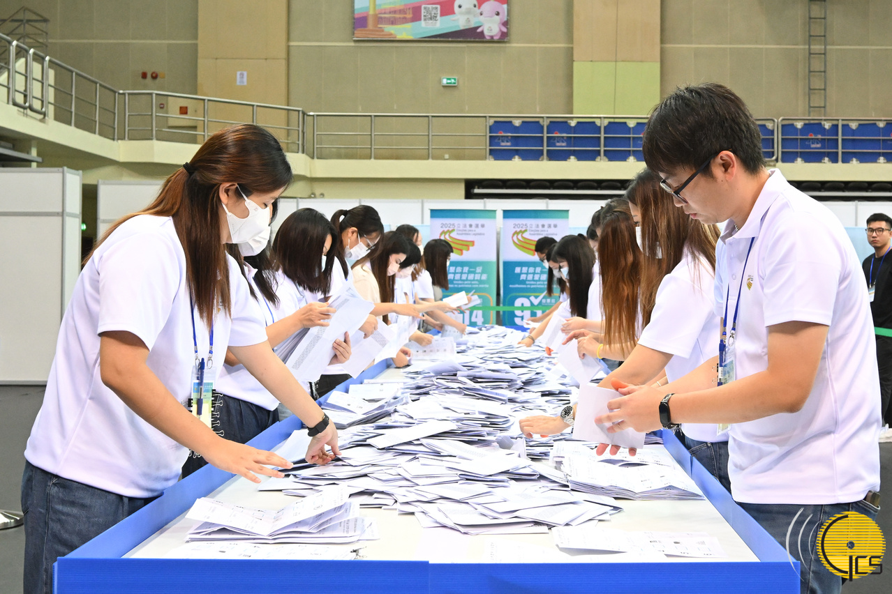 2025立法會選舉:投票站人員在截止投票後開啟票箱進行點票工作。