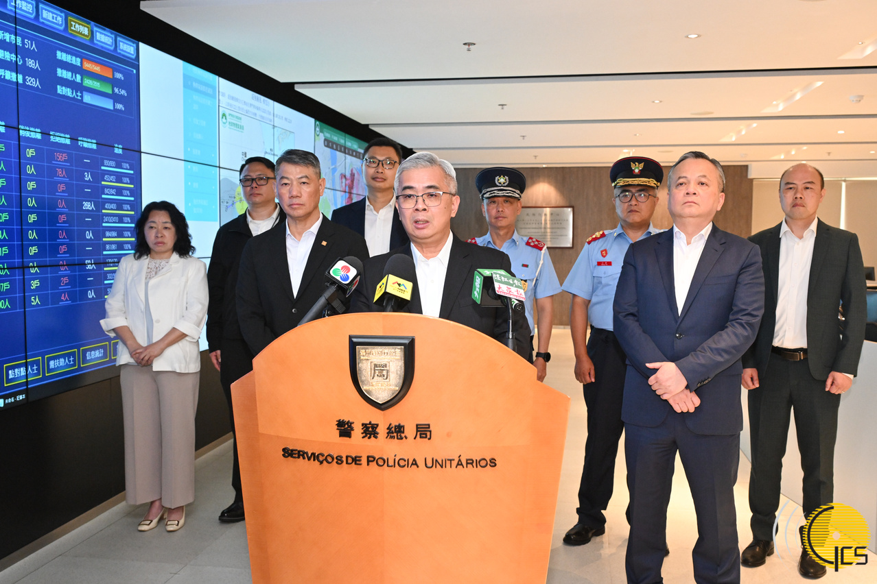 保安司司長、聯合行動指揮官黃少澤與"社區民防聯絡機制"成員在民防行動中心舉行會議,商討颱風“樺加沙”吹襲本澳的事前預防宣傳及風後復常協調工作。