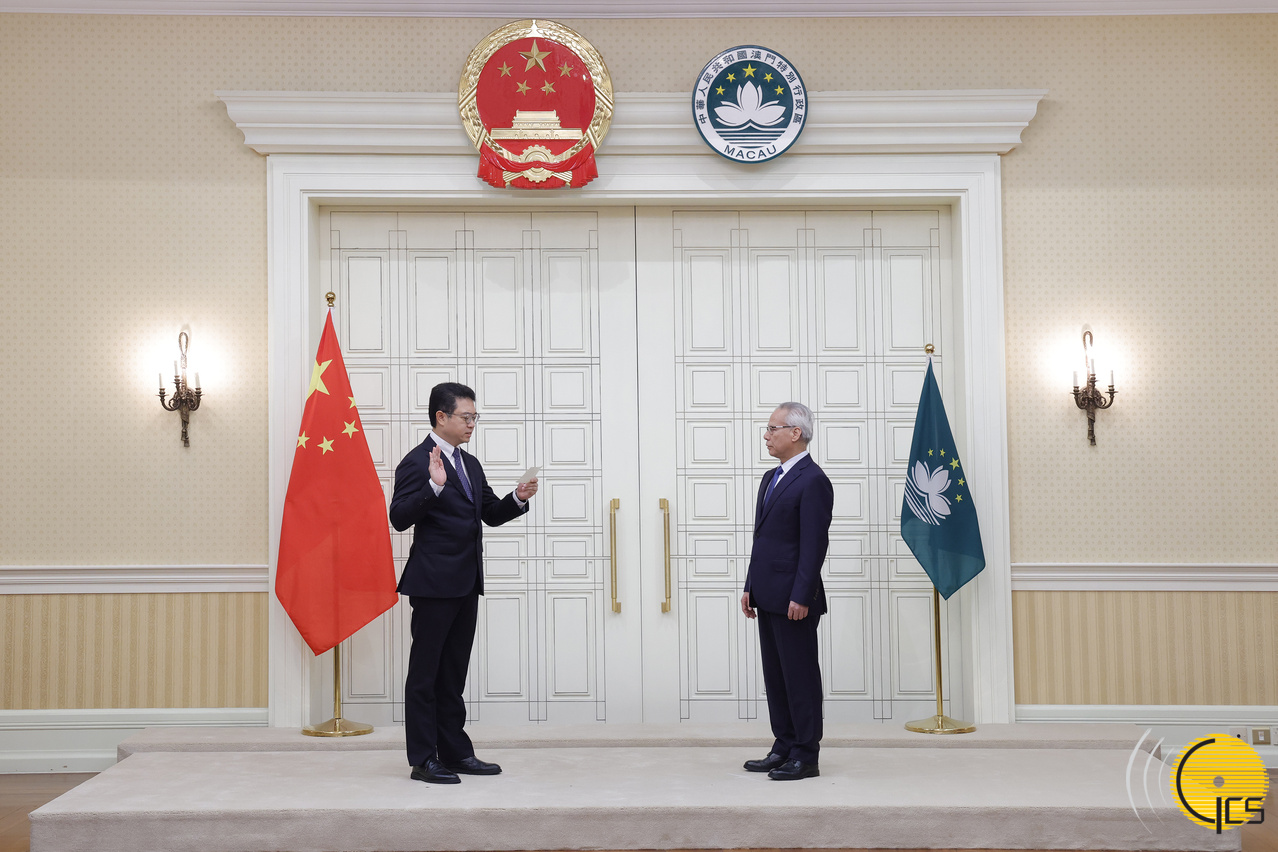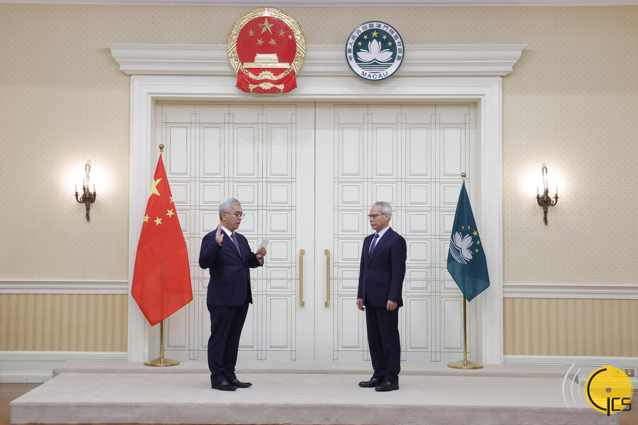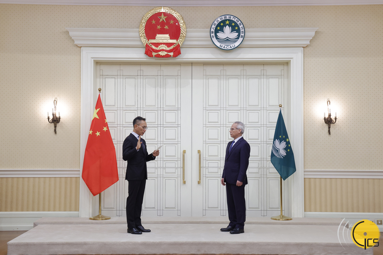 行政長官岑浩輝為宣誓就職的新任行政法務司司長黃少澤監誓。
