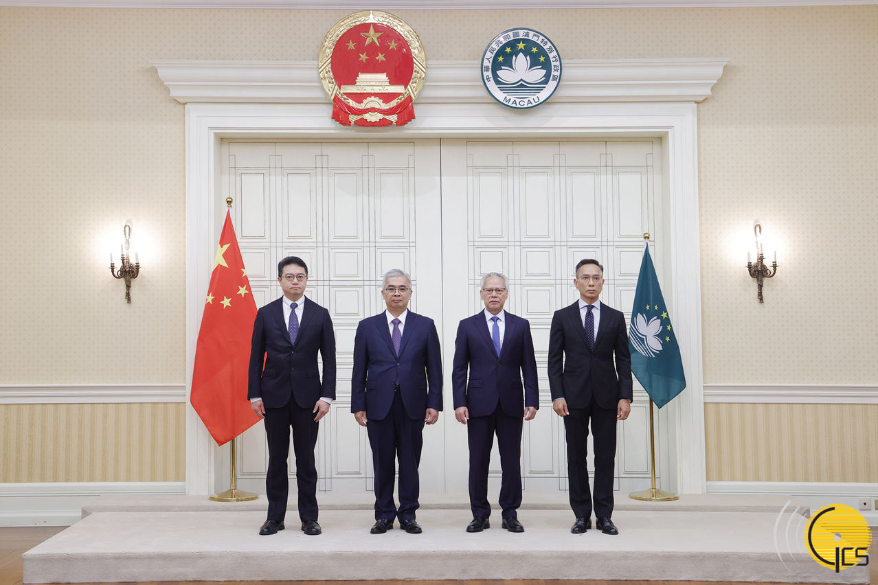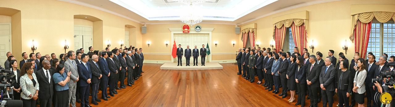 行政長官岑浩輝與新任行政法務司司長黃少澤、新任保安司司長陳子勁、新任檢察院檢察長唐曉峰合影。