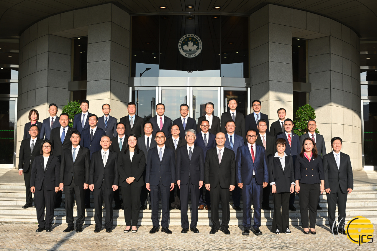 澳門特別行政區第八屆立法會全體議員在立法會大樓前合影。