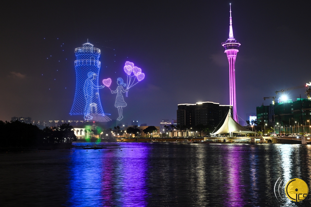 第三場“金駿雲翔 歡樂春節”2026無人機煙花匯演點亮澳門夜空。