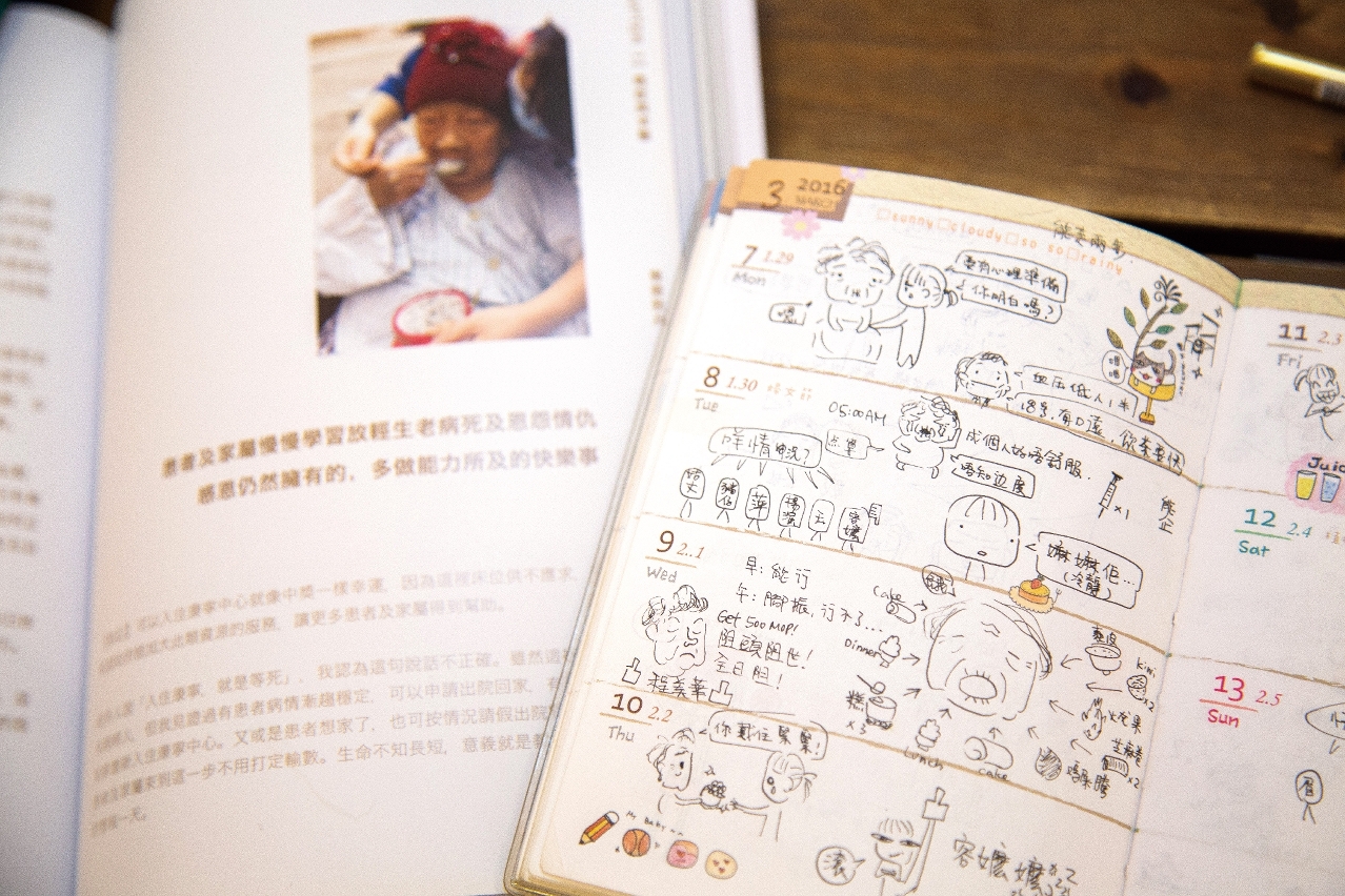 在康寧中心,有專業的醫療設施及醫護人員照料,相對地緩解了患者的痛苦,義工經常和嫲嫲聊天,病房充滿了她開懷的笑聲,好像恢復了以往的正常日子。悅程說,嫲嫲每次檢查前,嘴裡都念念有詞,仔細一聽,原來是請佛祖保佑她健健康康,度過難關。在能走動的日子,嫲嫲經常問悅程:是不是多走兩步、多吃蔬果就會很快痊癒?言行中透露出強烈的求生意志。