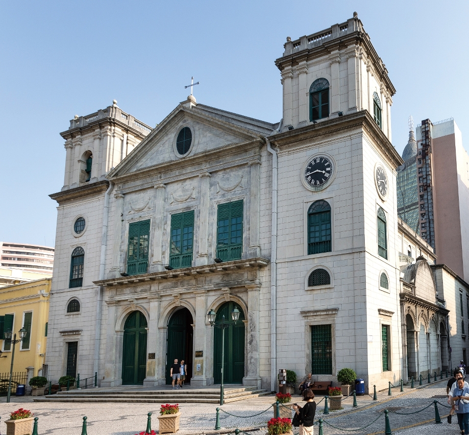 全名聖母誕辰主教座堂的主教座堂位於南灣區的坡頂,所在之地亦因而稱為大堂前地又稱為大廟頂。這座建築物於1980年代被評定為澳門的建築文物(紀念物),並於2005年作為歷史城區的組成部份被列入世界文化遺產。