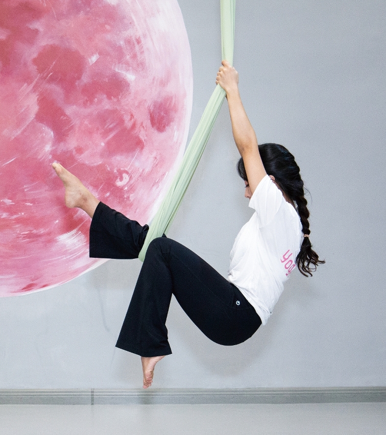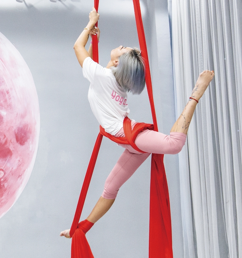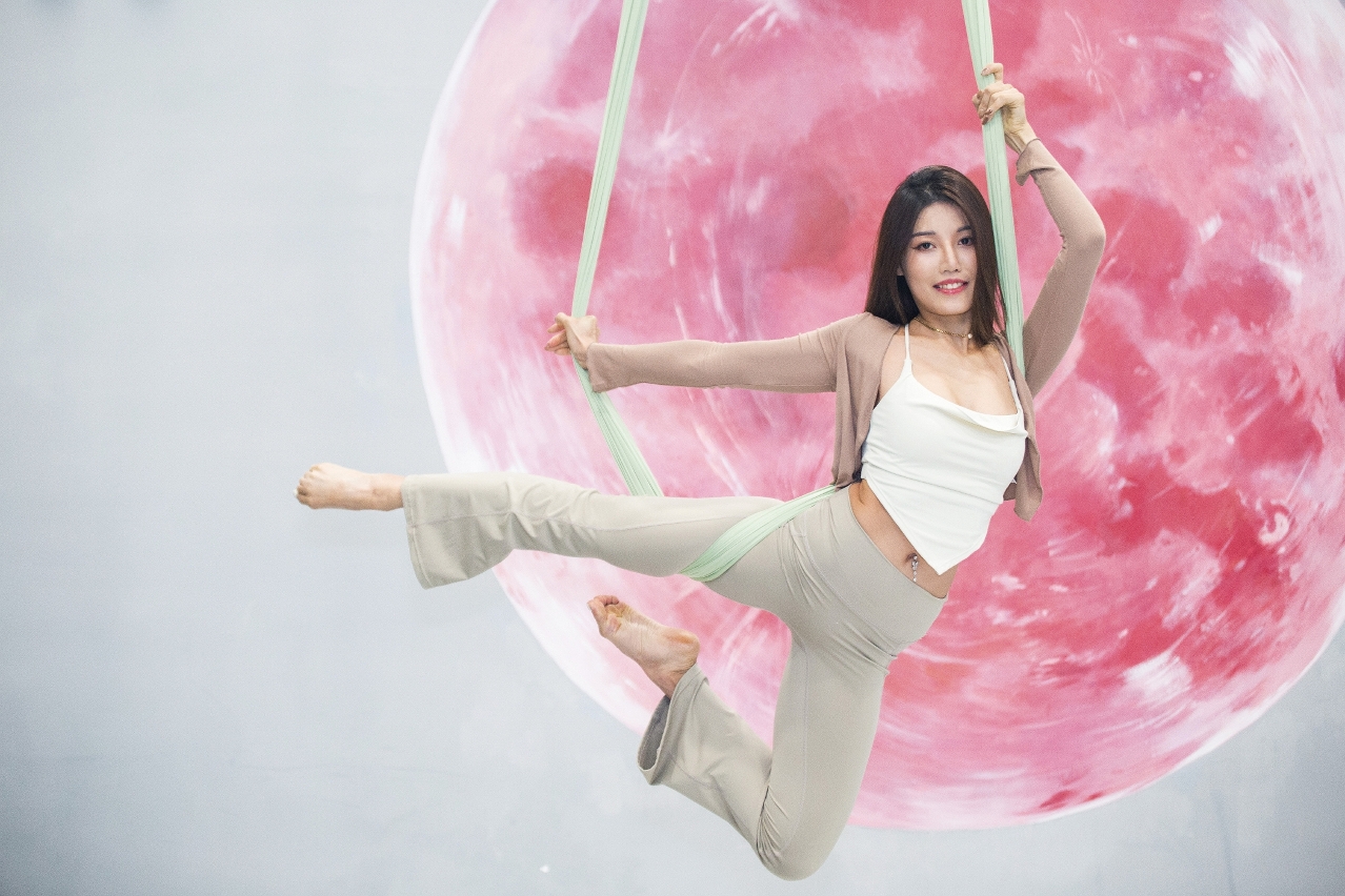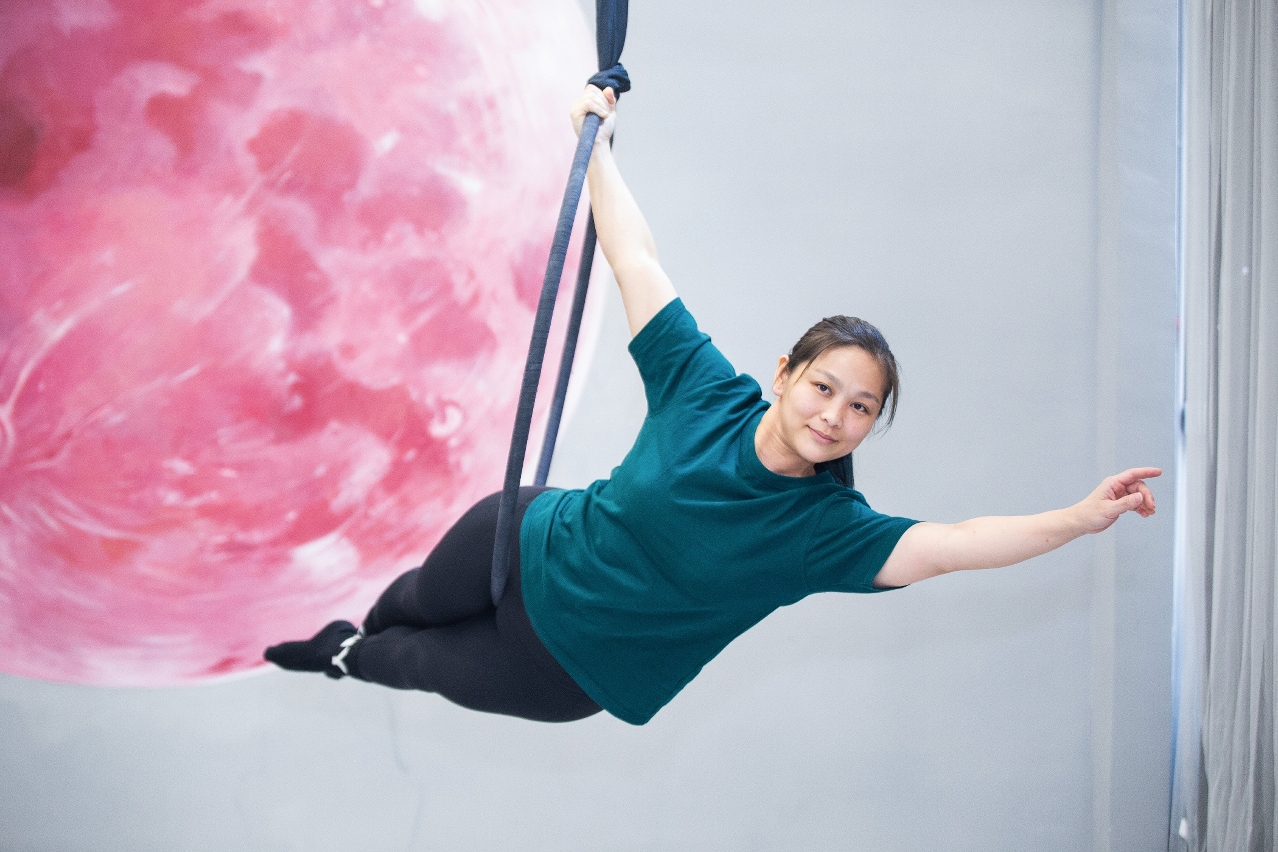 談到自身經歷,Misa說,認識空中舞蹈前,她是一位全職媽媽,由於長期照顧孩子,出現了脊柱側彎及椎間盤突出的問題,引致睡眠質量變差。2017年,她在朋友的介紹下接觸了空中舞蹈。「我心想一試無妨,上了幾堂後,睡得舒服了,於是便着了迷般每天去上課。」Misa形容,空中舞蹈改變了她的人生軌跡,找到了滿足感和人生意義。