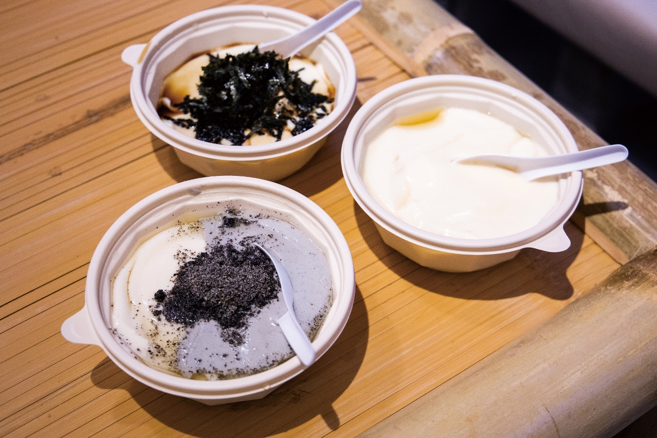 鹹辣豆腐花、太極黑白豆腐花、聖誕限定班蘭椰漿豆腐花……菜單上琳琅滿目的口味,將傳統和創新融合,改變人們對豆腐花的刻板印象。「我想向大眾推廣不同口味的豆腐花,如奶茶、咖啡一樣,讓大家有更多選擇。」黎栢鴻說,豆腐花和豆漿都是健康食品,為了吸引更多年輕消費者,在宣傳和包裝上花了不少心思。他以豆漿的包裝為例,會貼上印有寬記品牌形象的圖案貼紙,在剛過去的聖誕節,更特別在豆漿的瓶蓋戴上迷你聖誕帽作裝飾。「不少客人都會拍照放到社交平台上,達至更佳的宣傳效果。」
