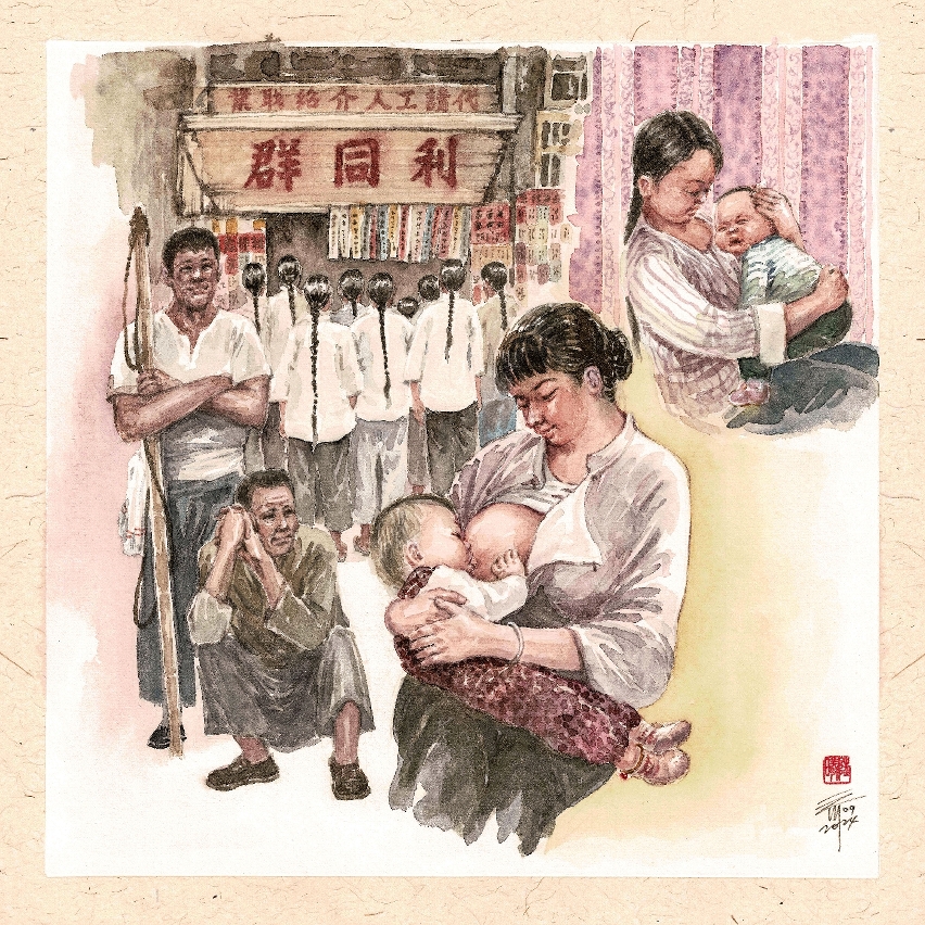 1950年代末,筆者有一位鄉親,夫婦倆胼手胝足經營街邊麵檔維生,頭兩胎子女都是自己哺乳,到第三胎,實在無法兼顧,就請了個乳母。三子由奶媽帶大到上小學才回到親母家。此後,兩家保持緊密關係,時相來往,到如今已延續到第三代,仍如一家人。