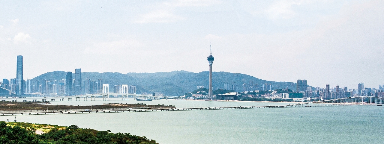 站在澳門城市大學(下稱「澳城大」)行政樓天台,可遠眺澳門半島的山景與特色建築。在陽光照映下,連接氹仔與澳門半島的白色大橋,被海面反射的日光映照得熠熠生輝,令人陶醉。澳城大創新設計學院執行副院長王伯勛介紹,團隊從長期累積的城市形象素材中尋找靈感,並在查閱《澳門特別行政區城市總體規劃(2020–2040)》時,發現規劃中特別強調須維護和展現澳門「山海城」的城市景觀。「我們認為這一詞最能貼切詮釋澳門風貌,因此確立為創作主題,同時結合過往研究經驗,深化對澳門的觀察。」
