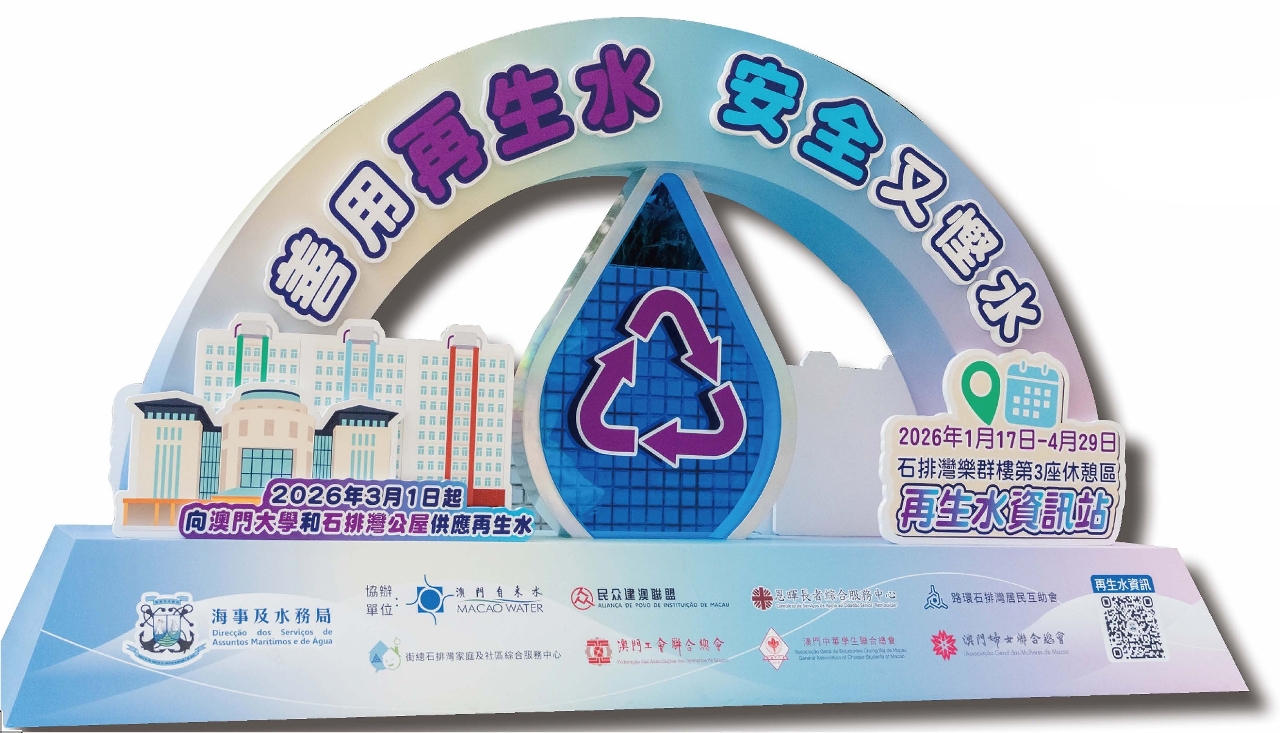 此外,海事及水務局將於2月28日在石排灣公立學校舉辦「再生水推廣日」。活動當日,將有一系列與再生水相關的攤位遊戲、工作坊、話劇及講座等。透過輕鬆、多元及互動的方式推廣再生水資訊,令居民明白發展再生水對保障澳門供水安全的重要作用,以及知悉再生水開始應用時間、應用區域、應用用途、水質標準、識別標識、交費方式、注意事項及查詢途徑等。