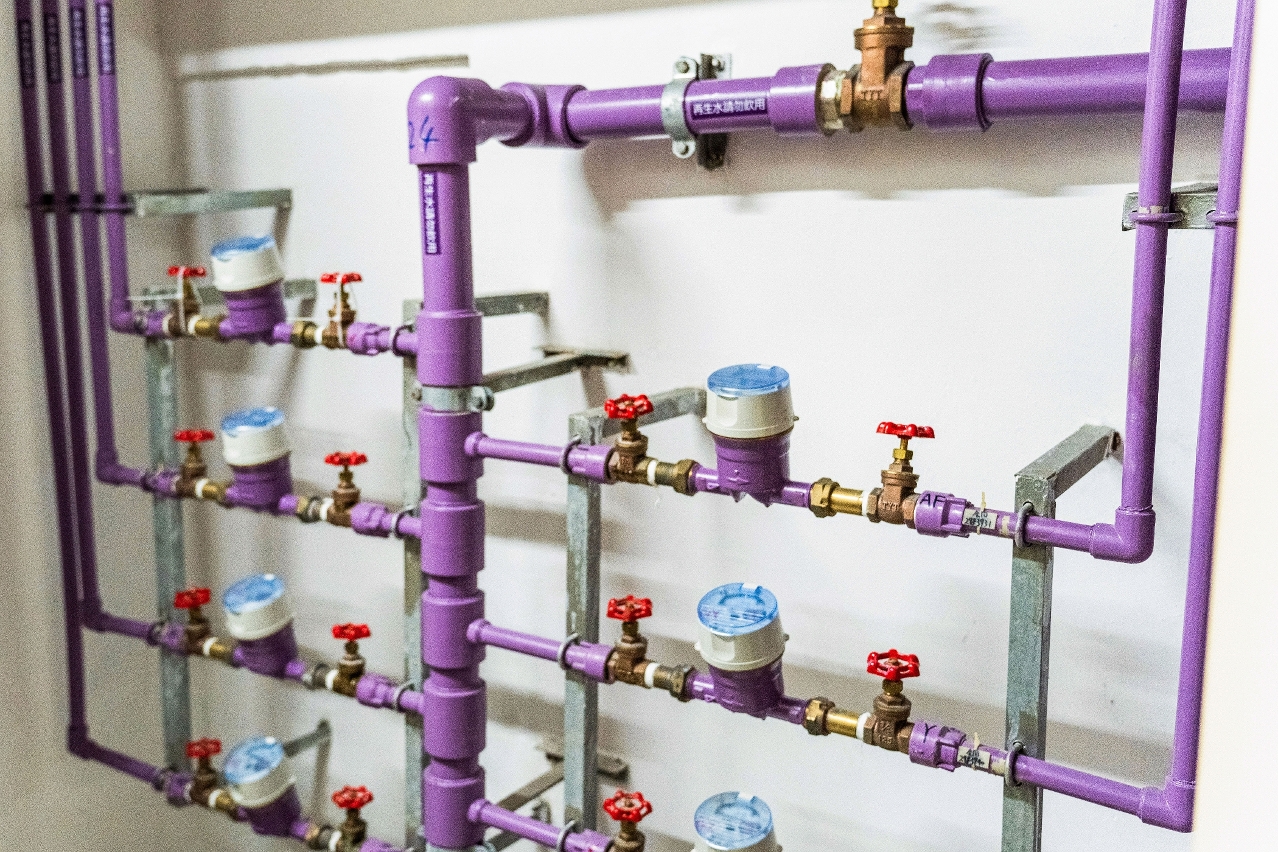 澳門再生水水管採用與飲用水水管不同的顏色以作區別。建築物內的再生水水管為紫色,飲用水水管則為白色、銀灰色、黃銅色。