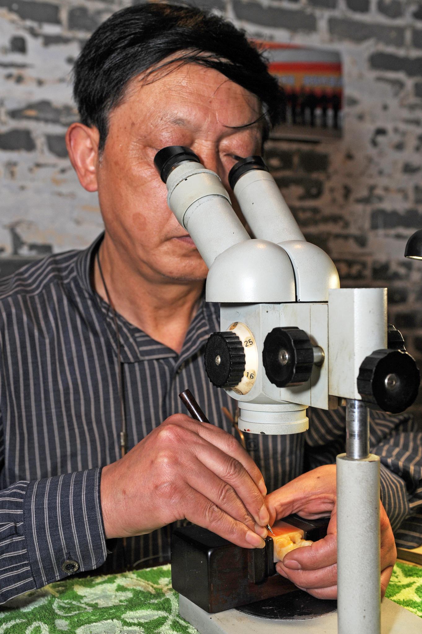現為浙江省書法家協會會員的丁小路,兼任中國精微研究會副會長,湖州師範學院、湖州美術學院客座教授,其金石微刻,楷、草、棣、篆、行五體兼備,作品被世界各國及國內愛好者所收藏。據丁表示,微刻是一種將宏觀縮小為微觀的藝術,藝術家須具備深厚的書法、繪畫功底,且經得起放大,並不失書畫之精妙,因而被冠以中國工藝美術獨具風格的“特技”之一。丁小路是次帶來刻上了茶經的紫砂茶壺及一套刻有七千字的印章,是經過屢次試驗才得以成功,充分表現出藝術家不屈不朽的毅力。為讓市民更好地欣賞微雕藝術品,現埸設有多個放大鏡供市民使用。