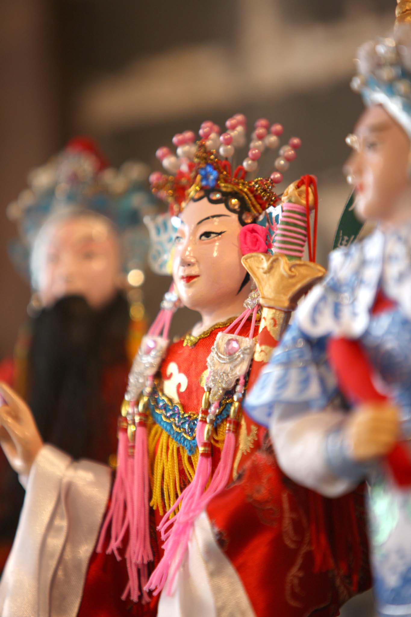 民間美術總是因群眾喜聞樂見才喚發生命力。雕塑工藝始於唐代元宵節活動中,舉凡社戲、舞龍燈、祠堂祭奠,都少不了古裝綢塑人物,因而使它植根於民間生活中,廣受歡迎。雕塑是以綾羅綢緞爲材料,給泥塑人物造像穿衣裳的一種傳統工藝,集雕塑、紙紮、臉譜、剪紙、彩繪於一身,其造型主要取材於戲曲民俗,京劇與古典名著等,是極具地域特色的美術種類。