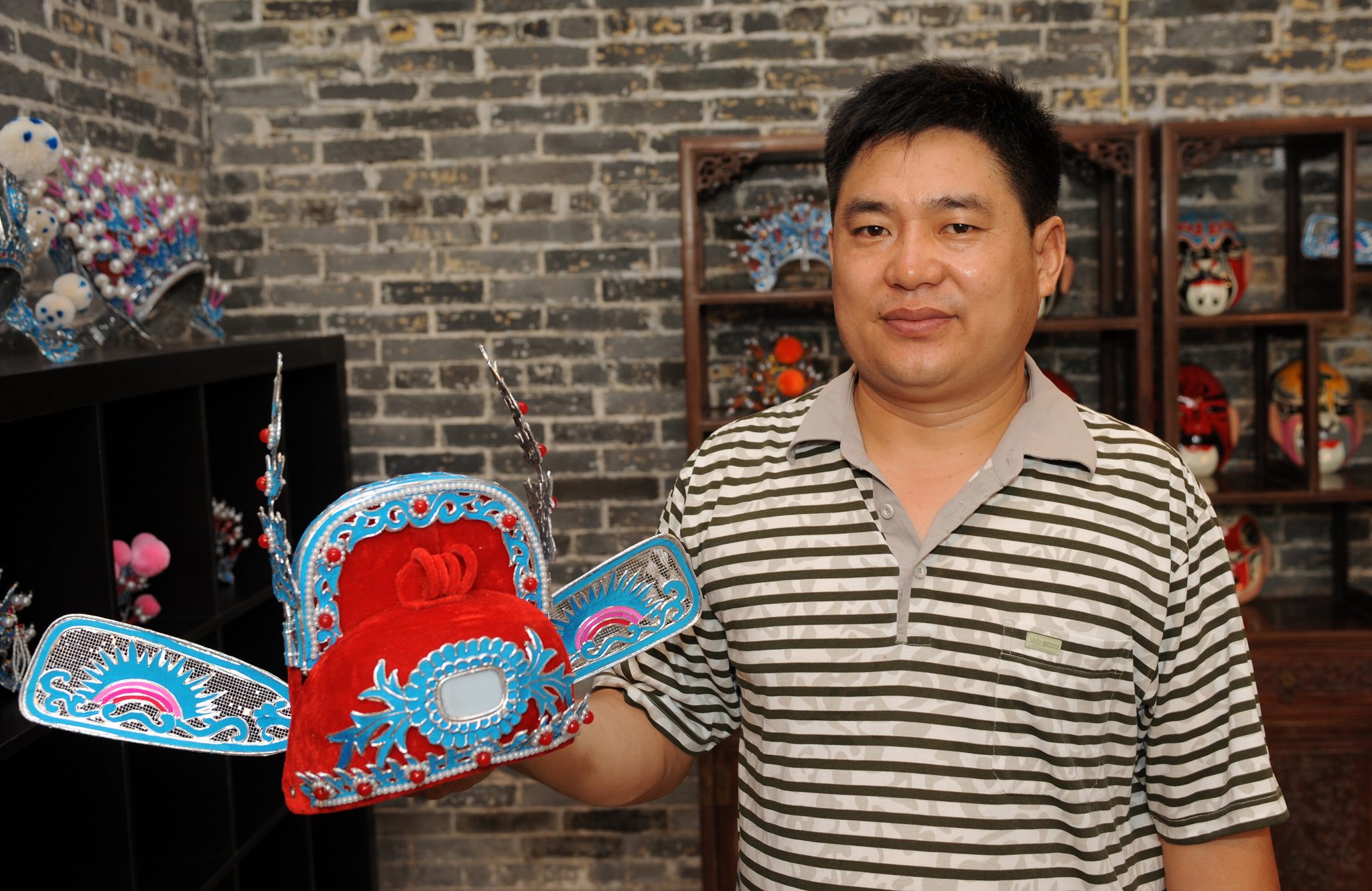與劉同期來澳的民間藝人霍軍政,從事戲劇頭盔製作至今二十餘年。戲劇頭盔,是指戲劇演員表演時所戴的冠帽。頭盔的製作歷史悠久,從元代至今已有七百餘年的歷史。在中國傳統戲曲中,頭盔在使用上不分朝代,大體分爲盔、冠、巾、帽四大類。頭盔款式能反映出戲中人物的性格角色,是戲中不可或缺的重要元素之一。