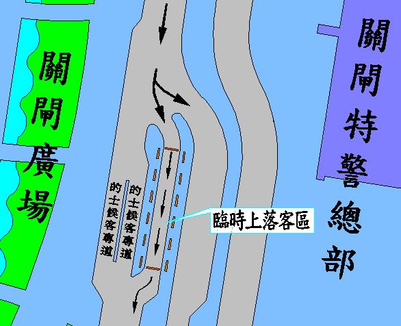 為改善關閘廣場一帶的交通秩序,方便乘搭私人車輛的市民在該區合法上落,交通事務局日前已完成位於該區的士候客區的重新評估工作,決定試行一臨時交通措施,將現有的一條的士候客專道改為上落客區,以提供一個更佳的上落客環境供市民使用。