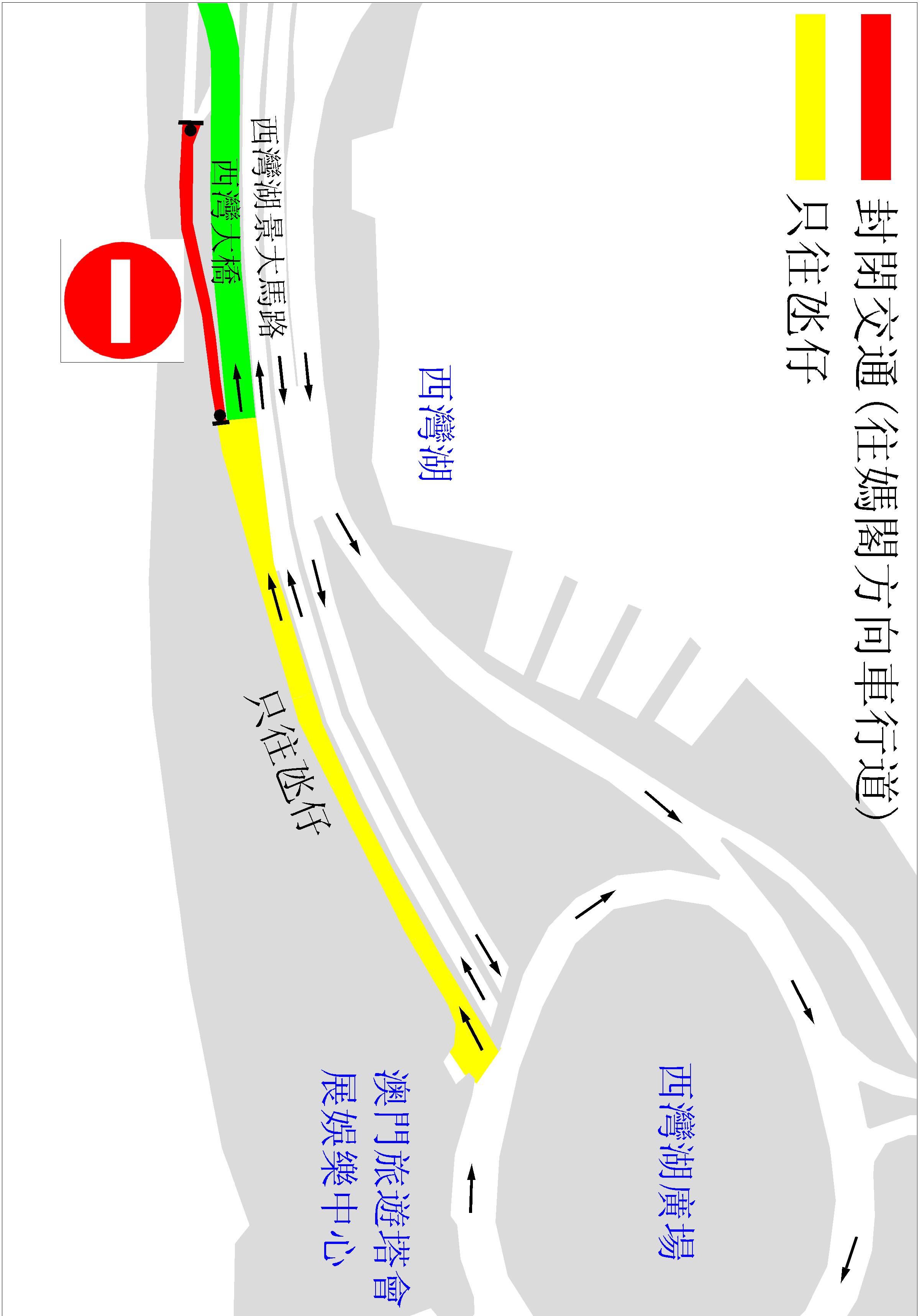 澳門電訊和電力公司本月22日起於西灣湖相關路段進行網絡及電纜鋪設工程,配合上述工程,當日上午十一時起,西灣湖景大馬路內路近融和門的路段會實施封閉交通,禁止一切車輛通行。屆時,經西灣湖廣場迴旋處前往媽閣之車輛必須改道至何鴻燊博士大馬路轉入民國大馬路方向行駛。上述工程為期約5日,工程完成後,將恢復原來的行車運作。