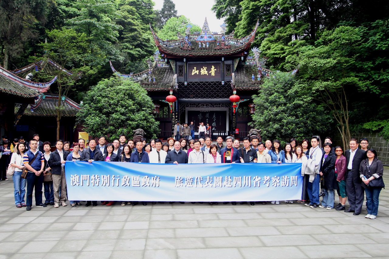 近五十人的四川考察訪問團,成員包括團長社會文化司司長辦公室主任譚俊榮、澳門特別行政區政府旅遊局局長安棟樑、旅遊發展輔助委員會秘書長梁潔芝、旅遊局市場處處長霍慧蘭、委員會成員及約三十名旅行社代表。