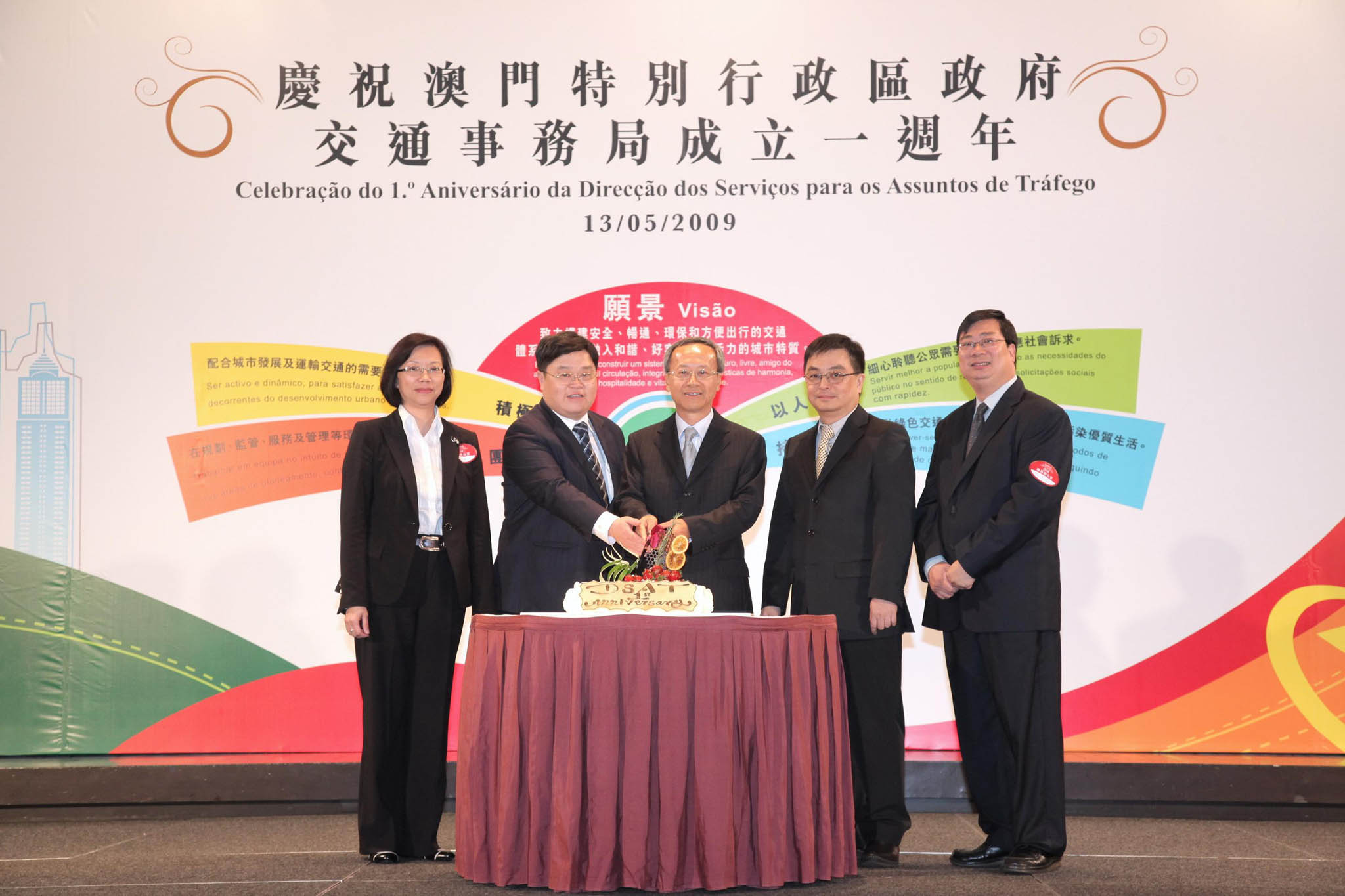交通事務局為慶祝成立一周年,於本月13日晚上舉行聯歡晚宴,與全體同事一同慶祝並回顧過去一年的工作成果。應邀出席的運輸工務司司長劉仕堯勉勵交通事務局全體同事,繼續發揮團隊精神,以踏實和辛勤的作風,努力把澳門打造成為交通便捷及宜居的城市。