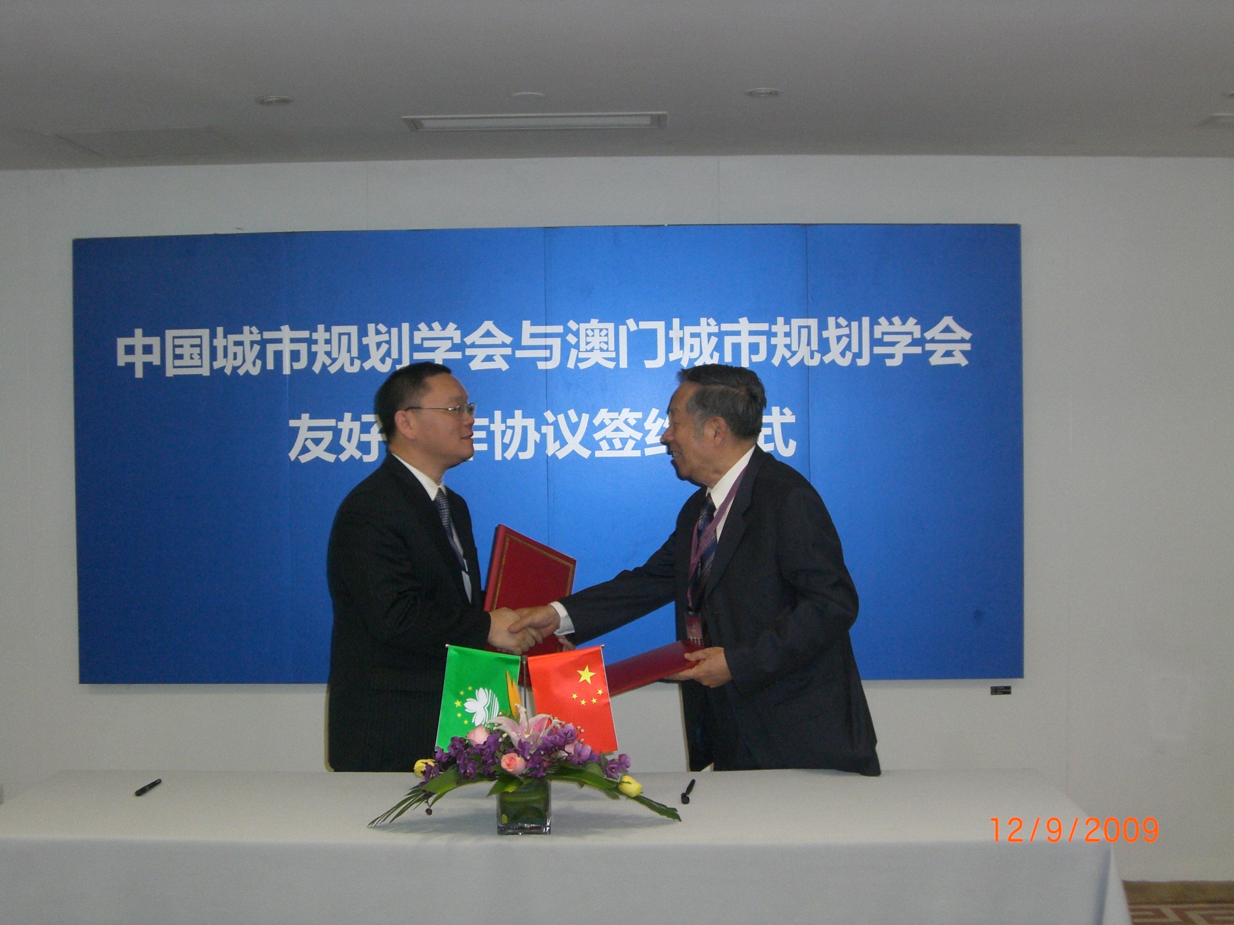 在年會期間,中國城市規劃學會常務副理事長鄒德慈與澳門城市規劃學會會長崔世平共同簽訂了兩個規劃學會的合作協議。中國城市規劃學會理事長周干峙,住房和城鄉建設部城鄉規劃司司長唐凱、計劃財務與外事司司長何興華,中國城市規劃設計研究院院長李曉江,中國城市規劃學會秘書長石楠,以及其他領導等出席了兩個規劃學會的合作協議簽署儀式。