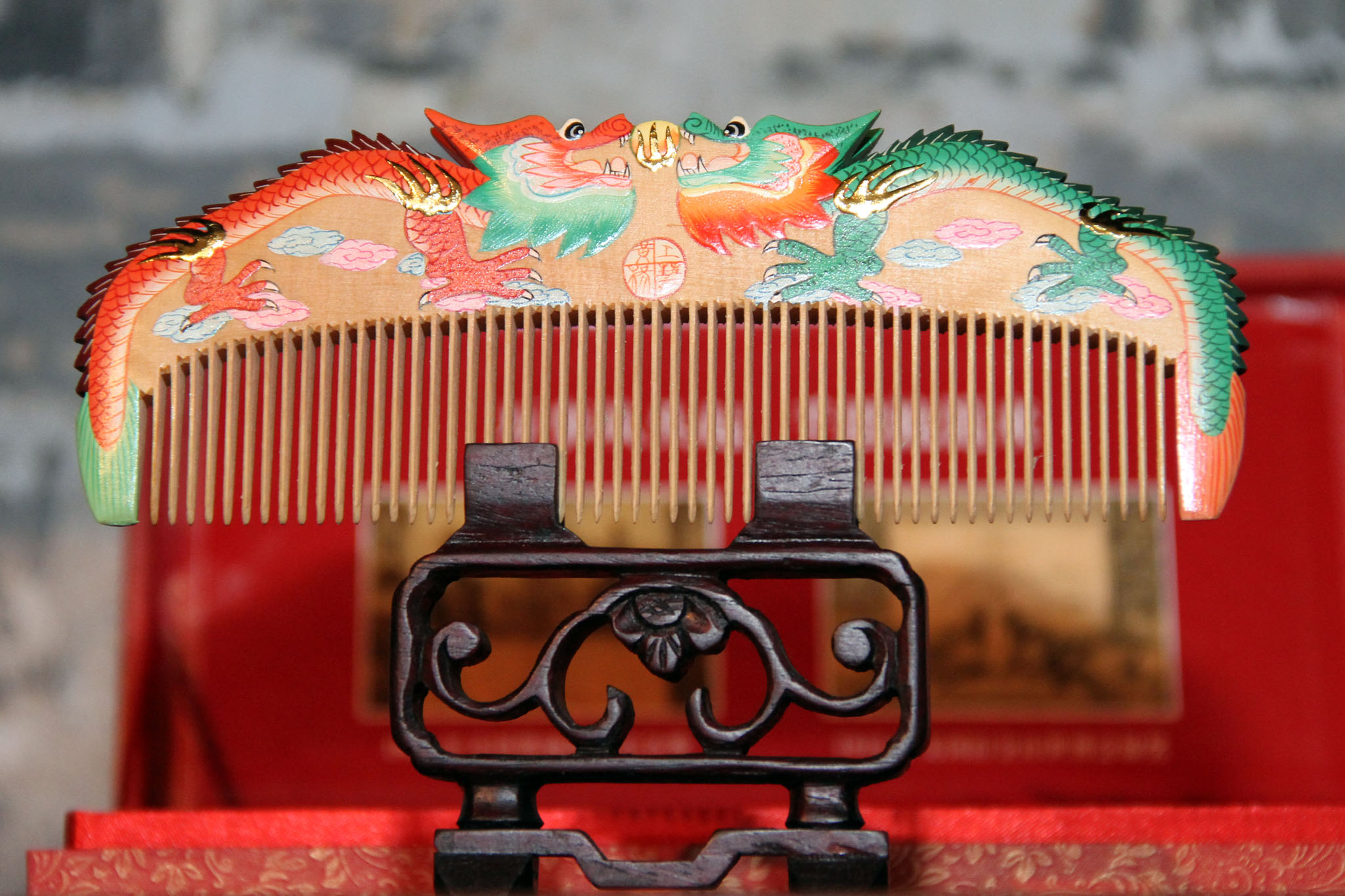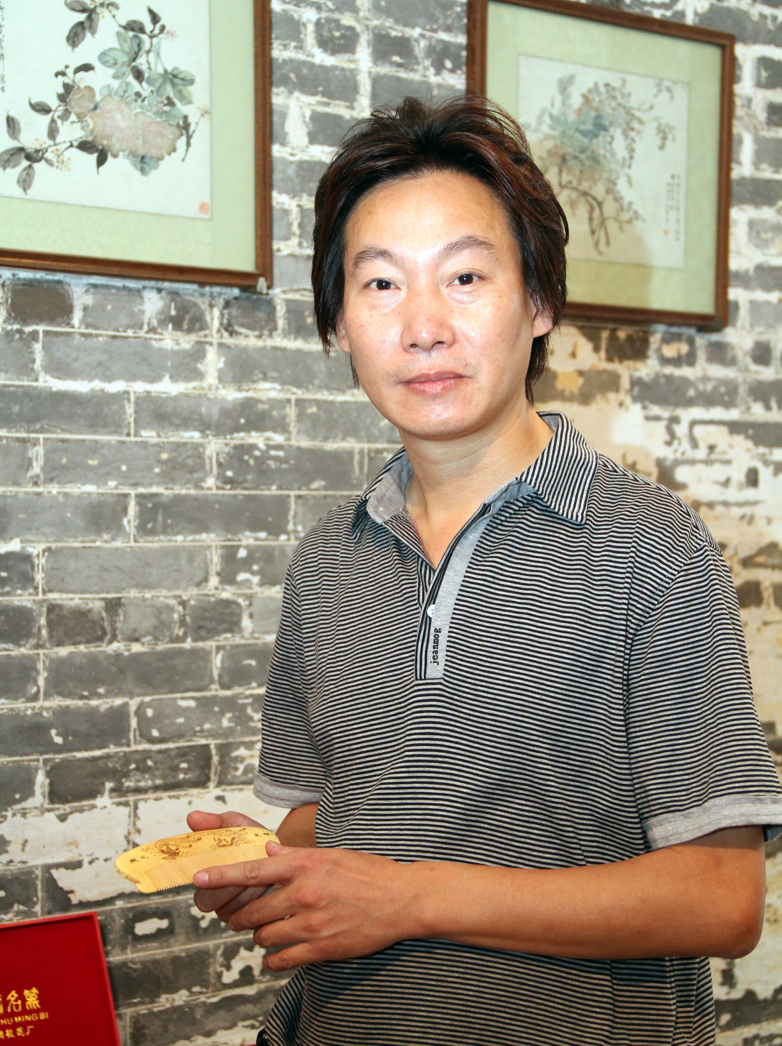 戚正康2008年被評為省級非物質文化遺產項目代表性傳承人,其梳篦作品多次在國內重要的工藝美術品中獲獎,當中作品更被選為上海申辦世博會的專用禮品。是次來澳帶來包括彩繪作品“京劇臉譜”、烙燙“四大才女”及多款造型精美的梳篦作品,實用與觀賞性並存。