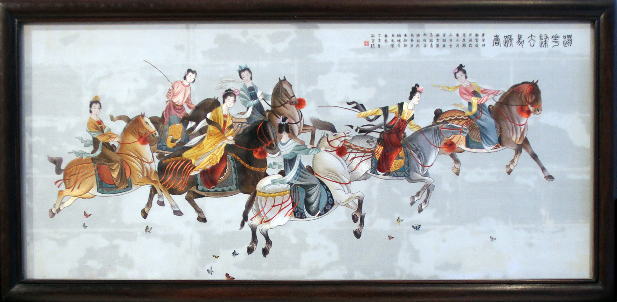 無錫刺繡又稱“錫繡”,早在春秋時期就稱譽中原,歷史悠久。“錫繡”的針法複雜,計有戳紗繡、挑花繡、堆紗繡、列針繡等百餘種之多。上世紀八十年代初,“錫繡”在繼承傳統的基礎上,發展創新了“雙面精微繡”,成為舉國公認的優秀藝術品種。“精微繡”的藝術特色主要在於卷幅微小、造型精巧、繡技精湛,有所謂的“寸人豆馬、蠅足小字”之名。精微繡的技藝要求十分高,在繡制精細部分時,須將一根絲線劈成八十分之一,藝人必須手眼與心靈相通,方能繡成。2008年無錫精微繡入選第二批國家級非物質文化遺產名錄。